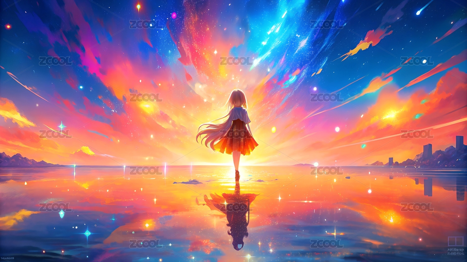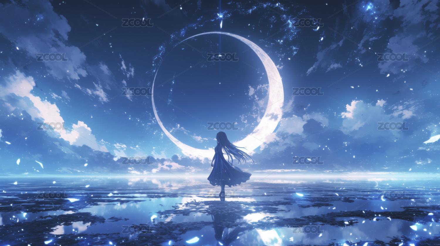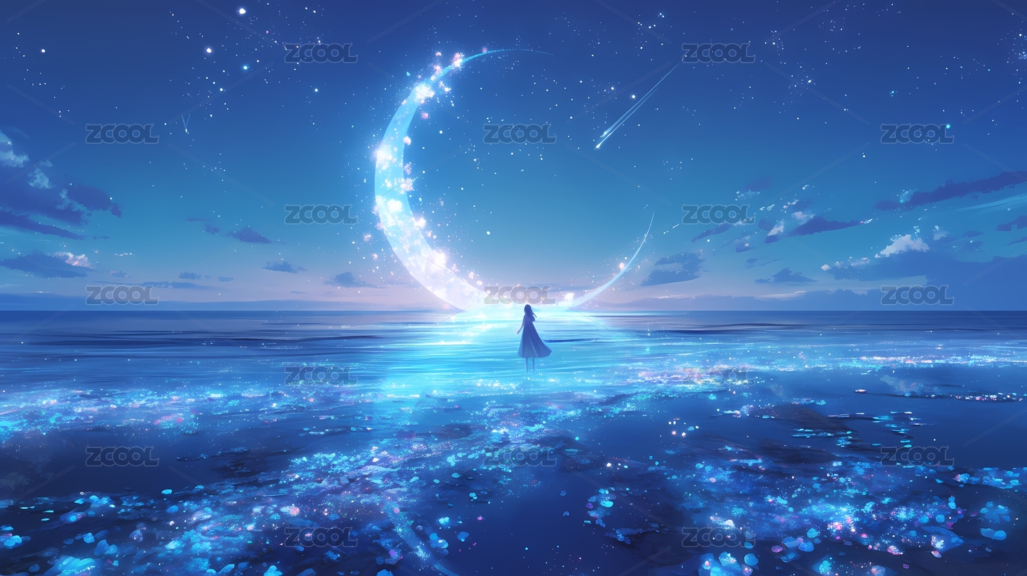 蓝色,艺术,绘画,粒子,宇宙,梦幻,奇幻,能量,景色,少女