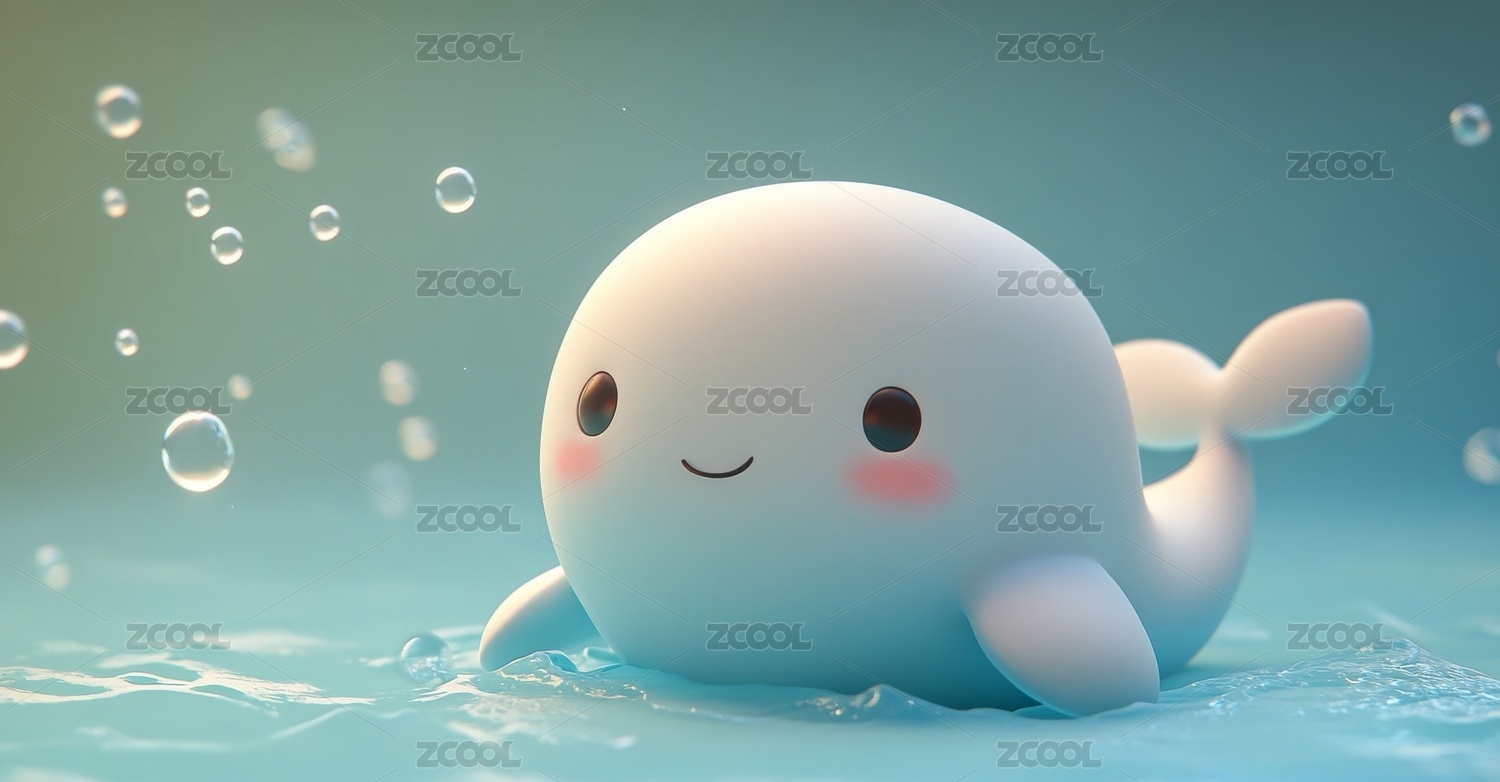 可爱卡通白鲸与气泡素材