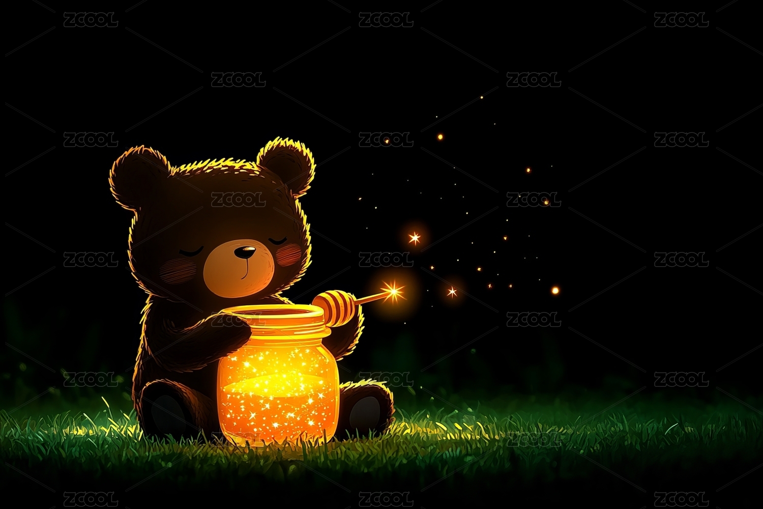 夜色熊和蜂蜜罐
