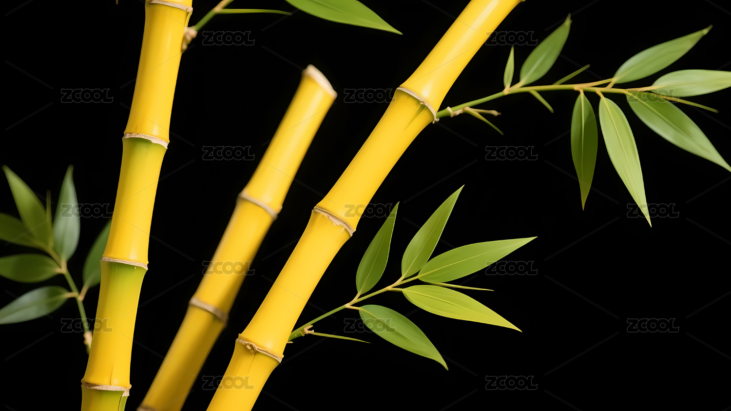 黄色竹子与绿色竹叶