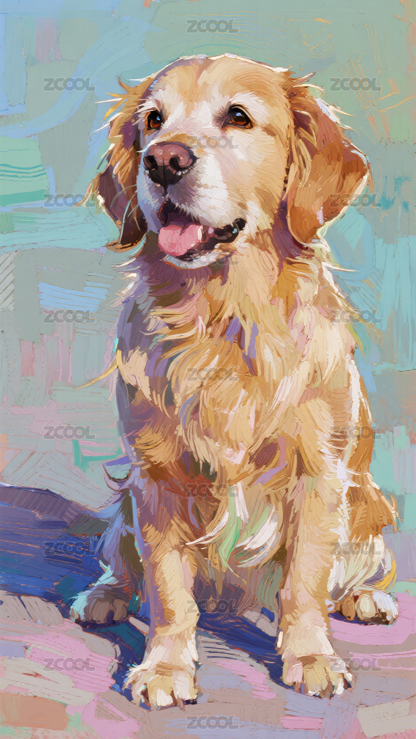 春天, 田园, 绘画, 花, 动物, 肖像,金毛犬, 狗, 蓝花, 毛茸茸的
