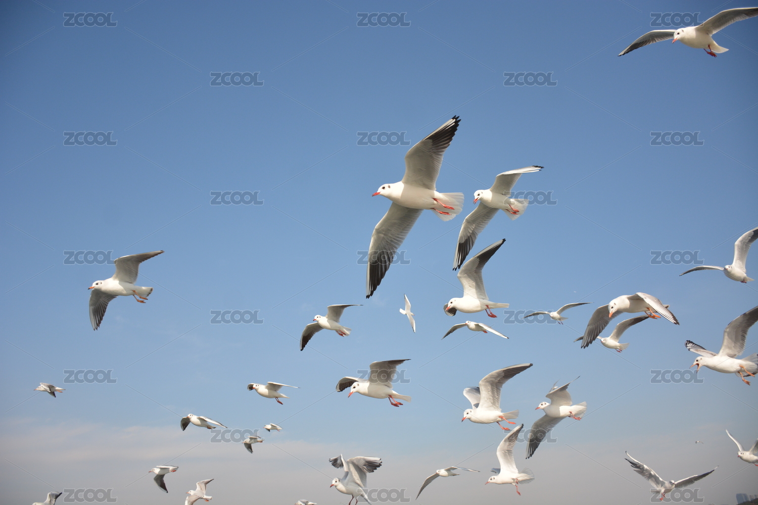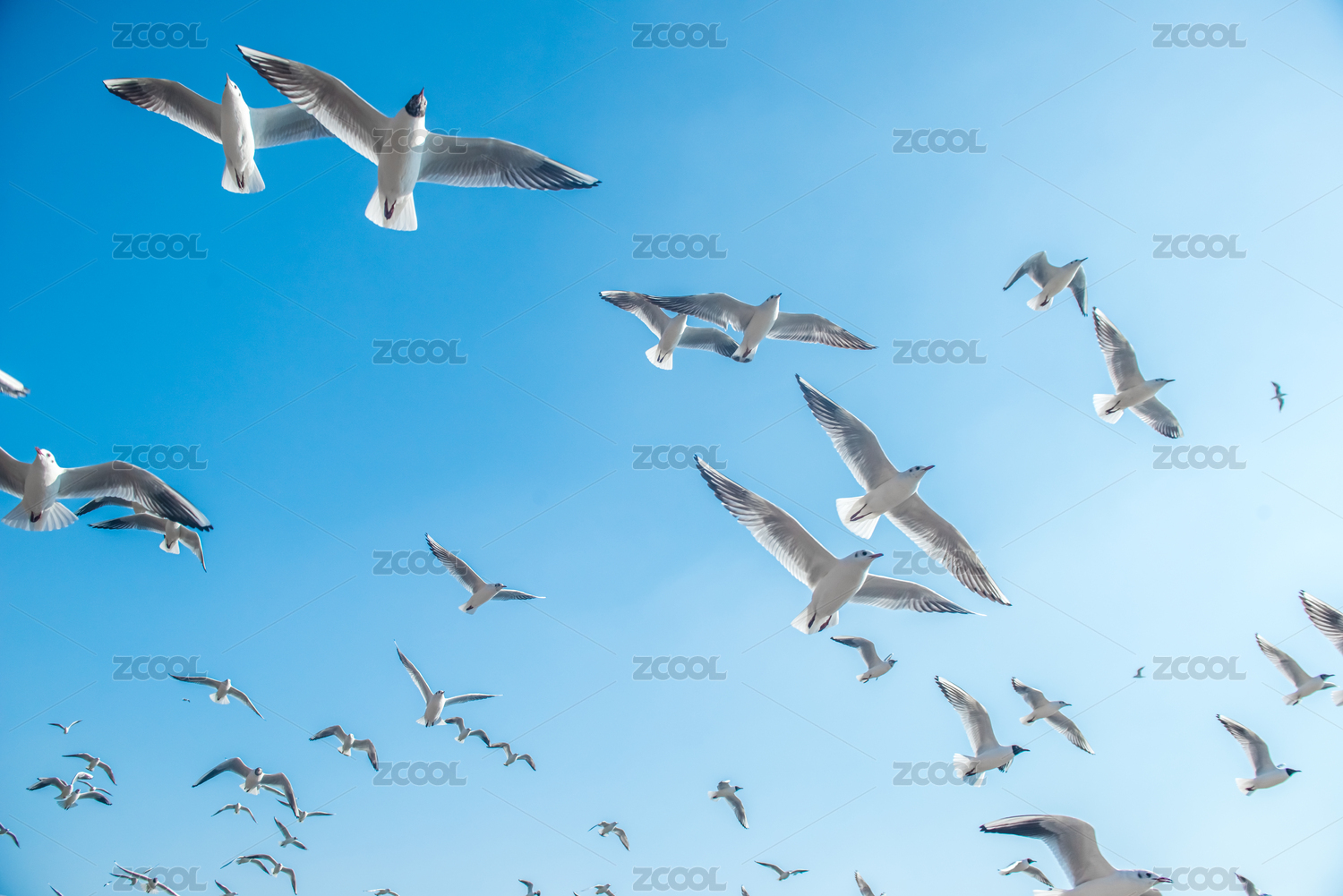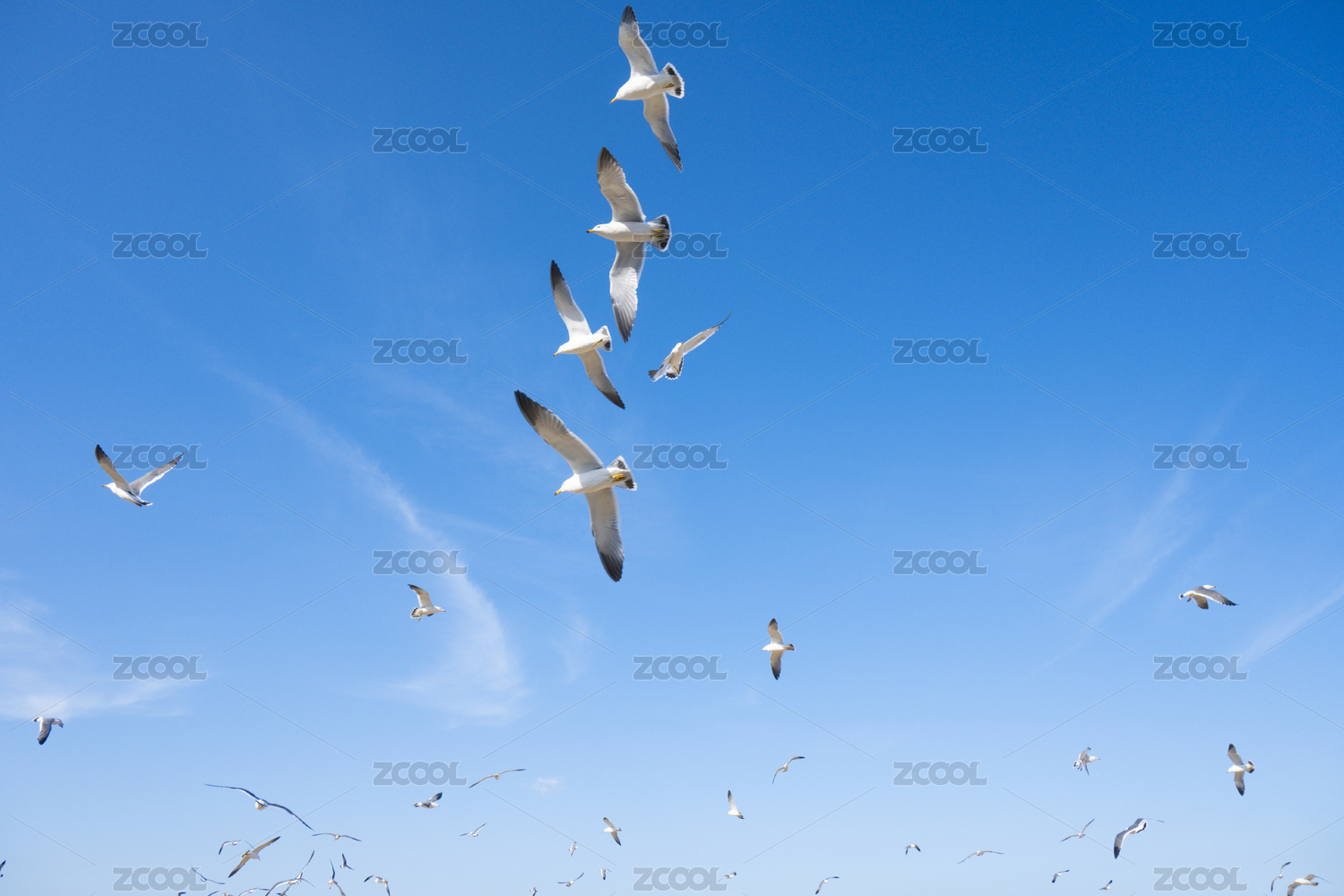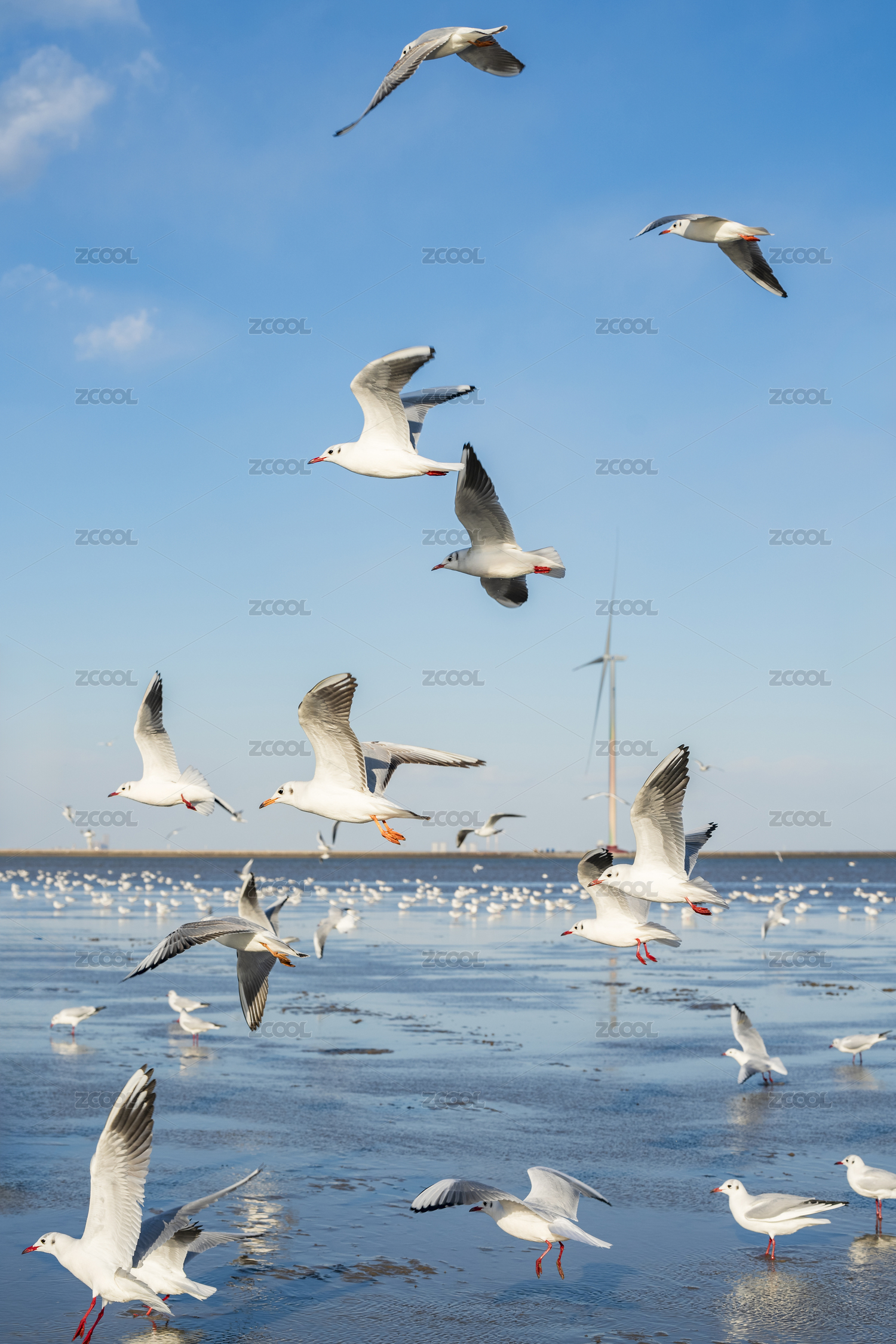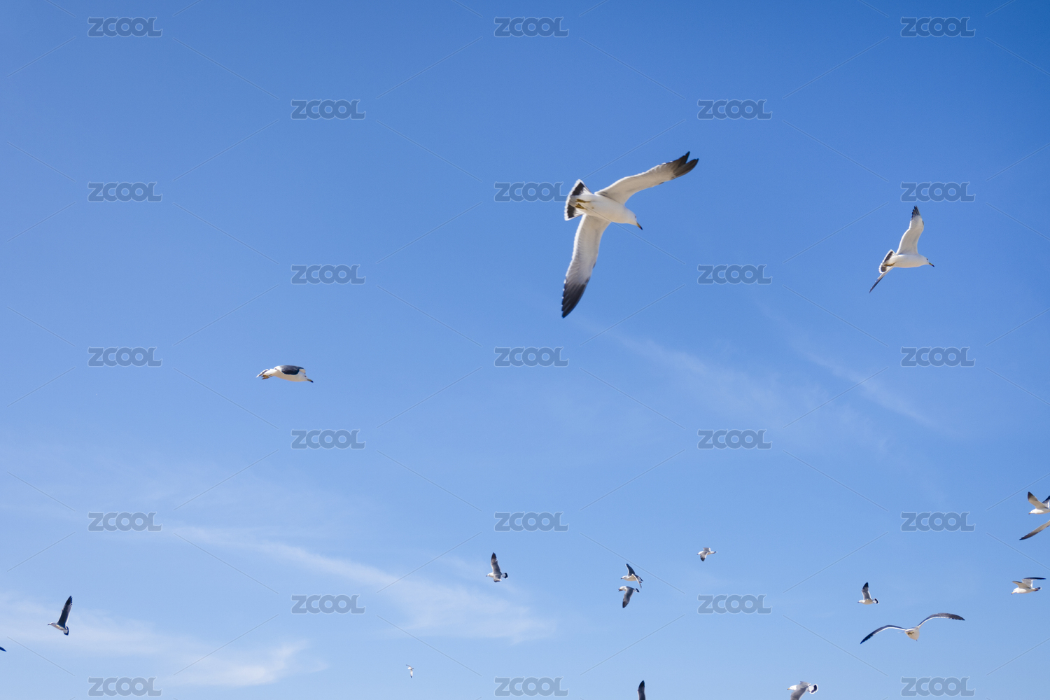 蓝天大海沙滩海鸥飞翔生态保护自然风景
