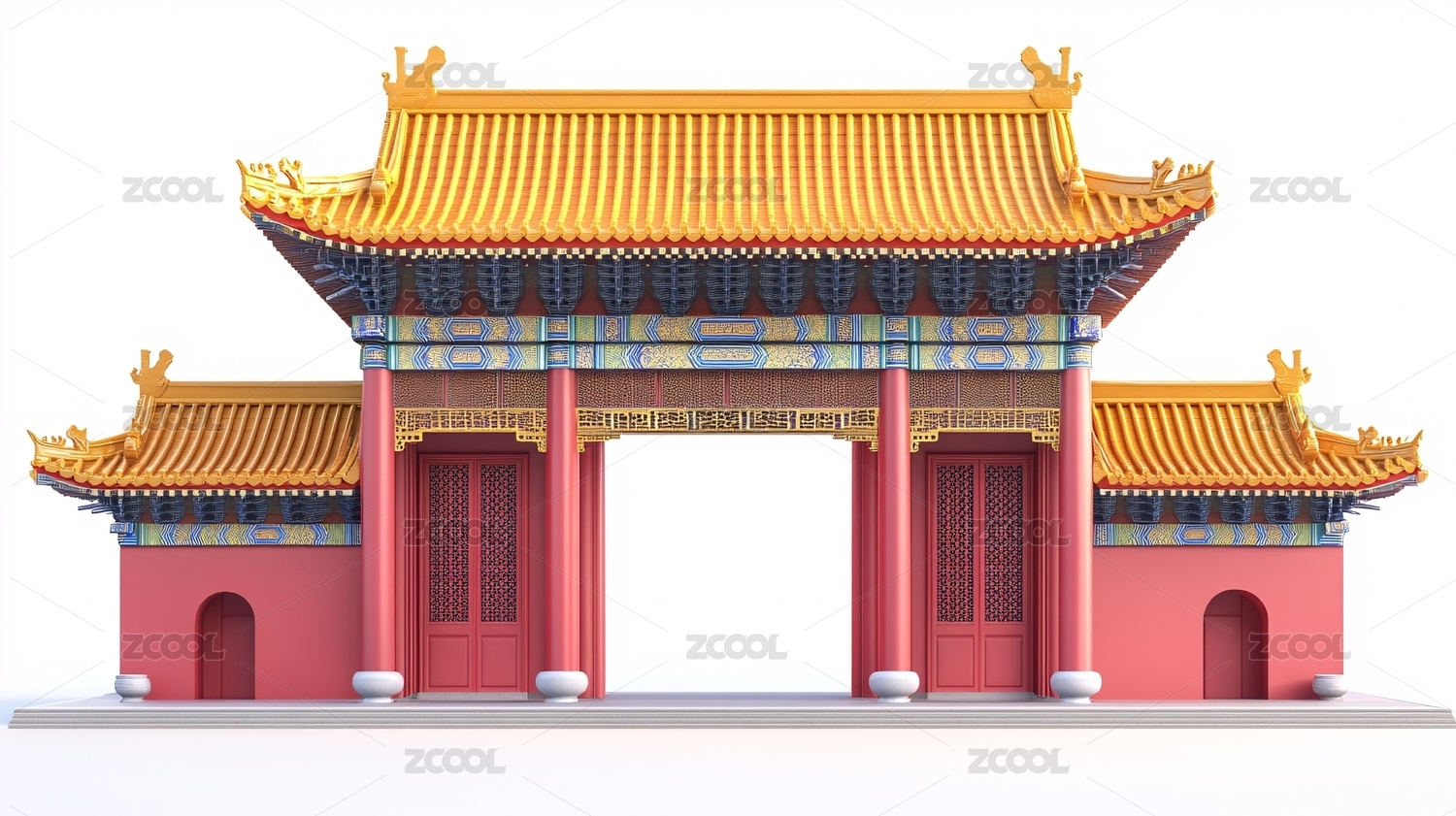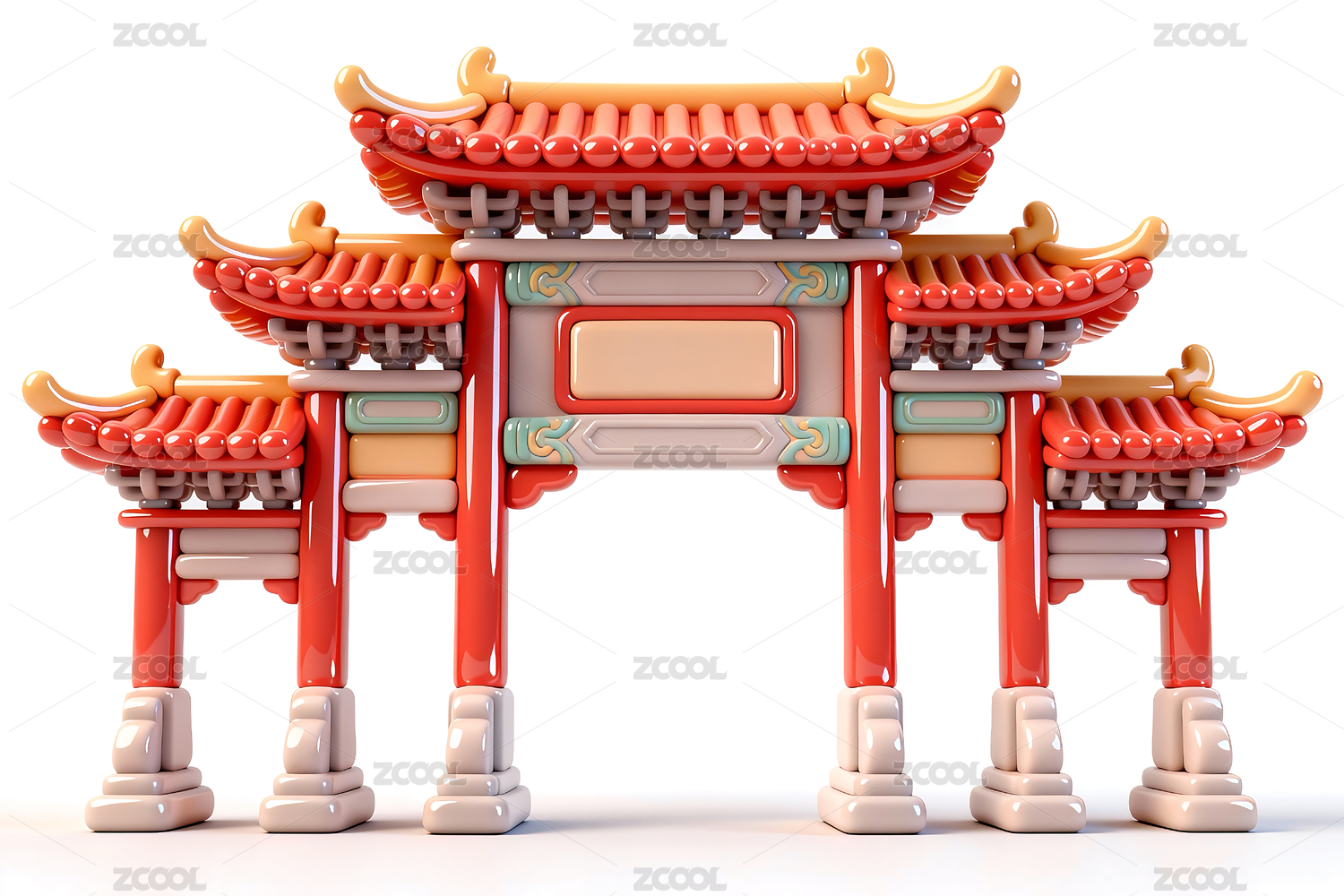 古建,元素,建筑,古风,中式,牌楼,红色,新年,节日,孤立