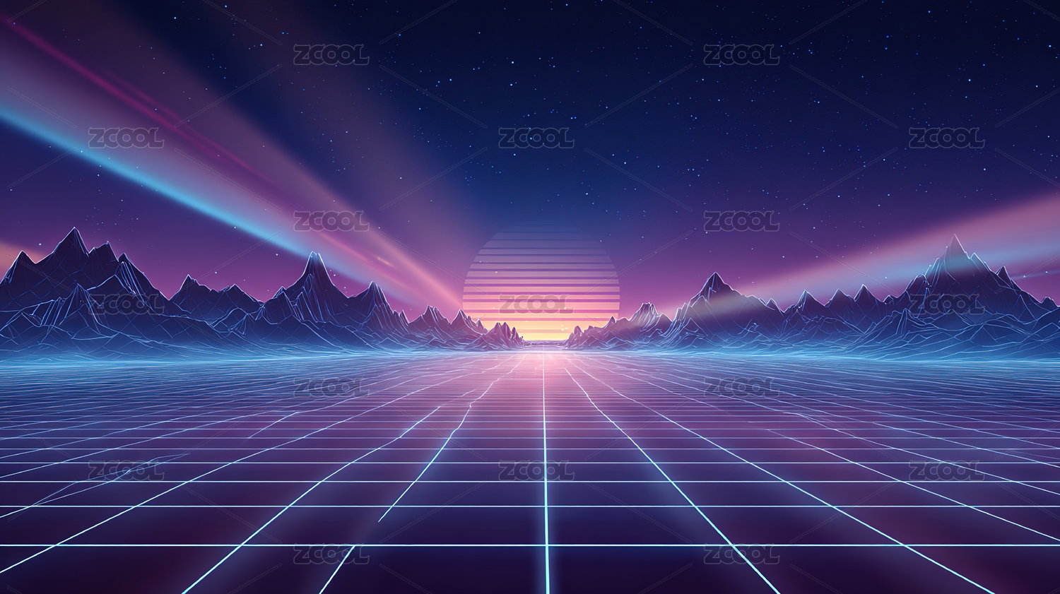 复古未来感网格星空山景