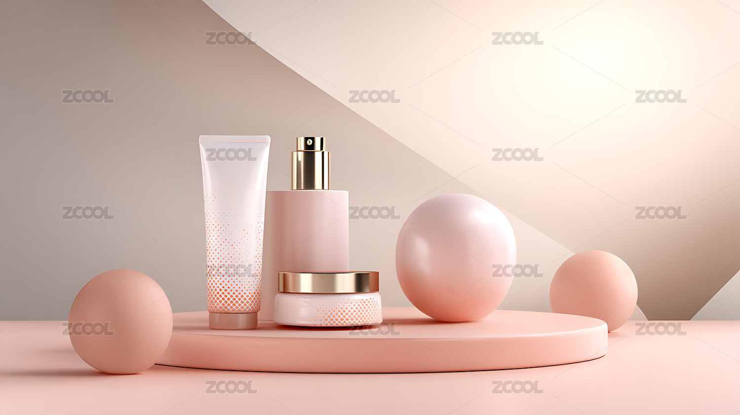 护肤品展示简约粉色背景