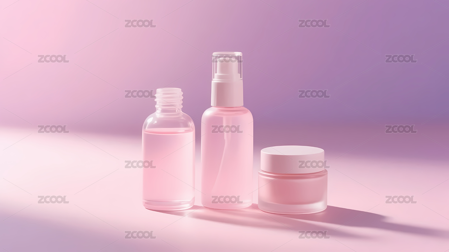 粉色透明护肤品温馨氛围