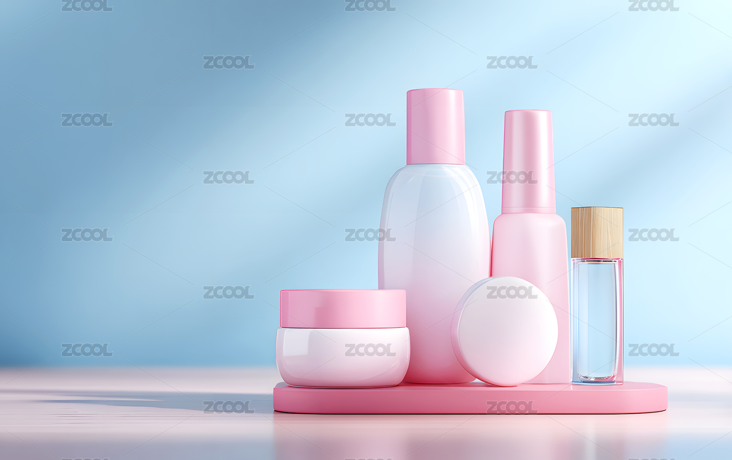 粉嫩色系护肤品展示