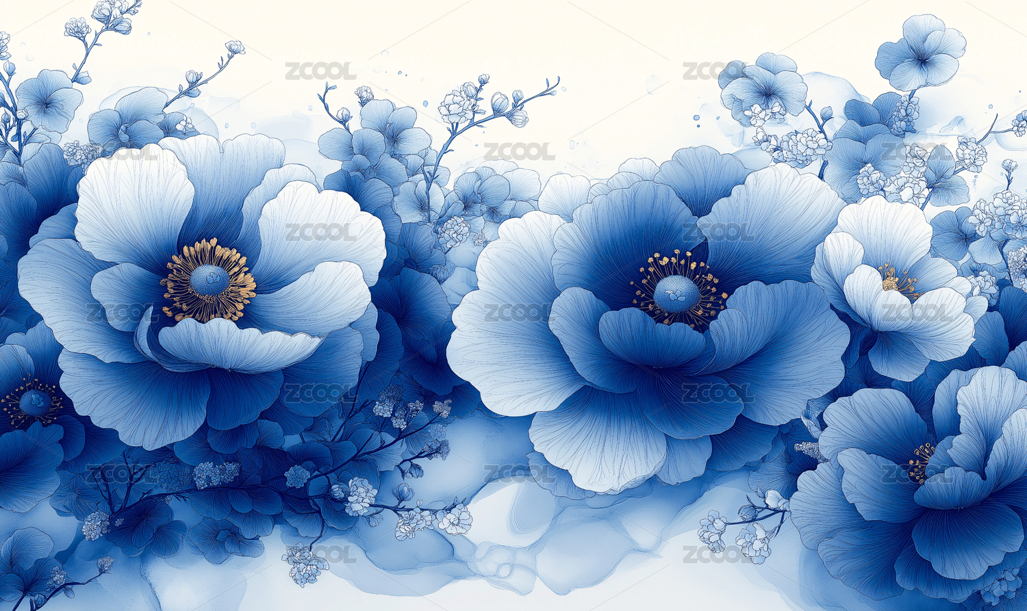 蓝白花卉唯美装饰图案