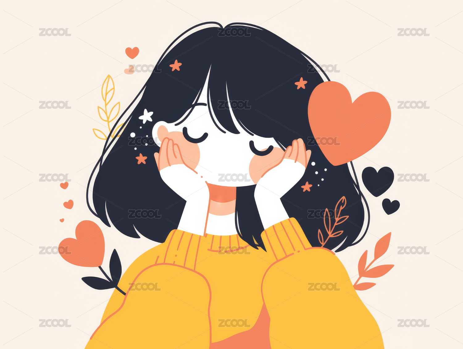 女孩双手捧心闭眼微笑