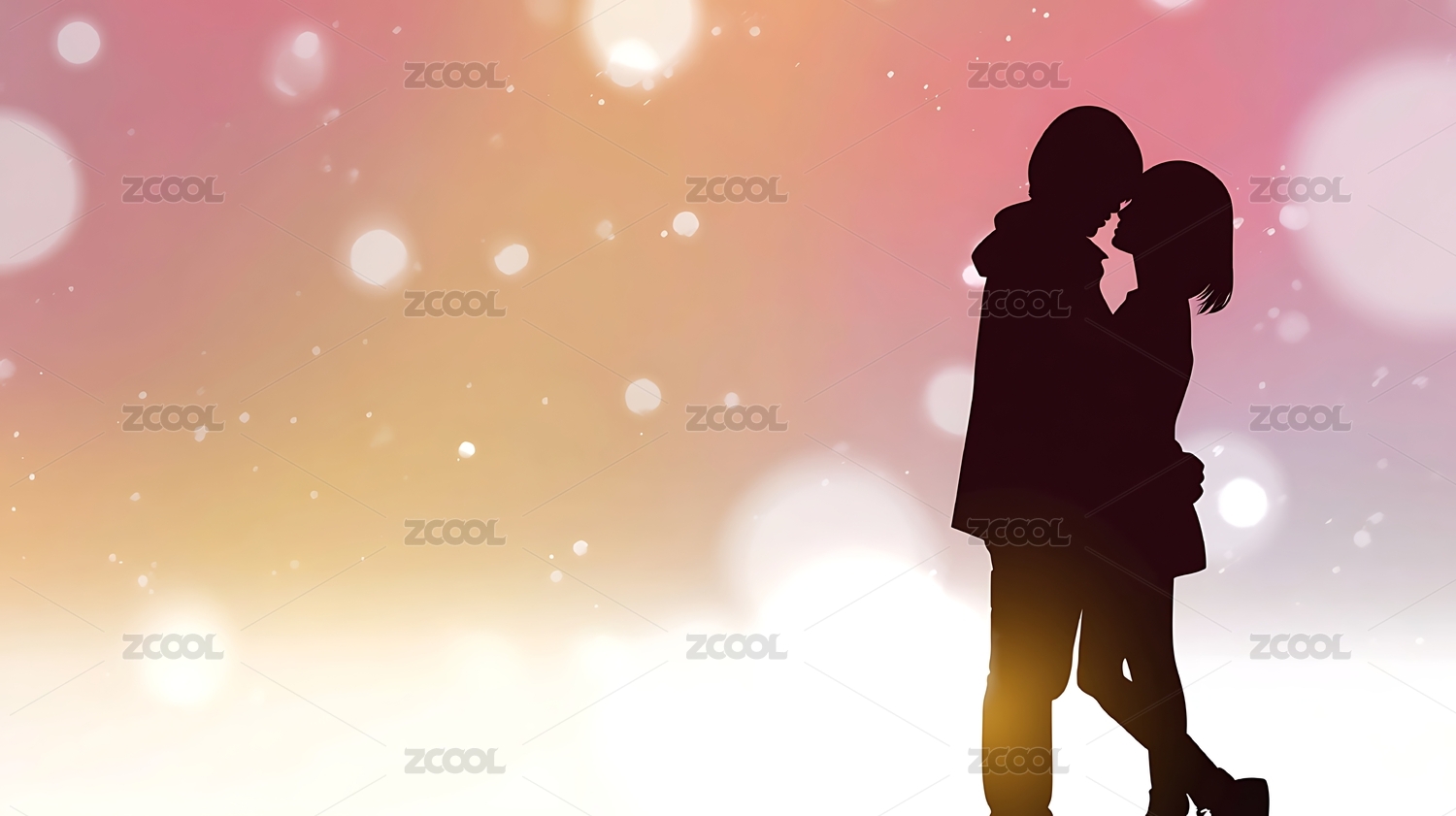 情侣剪影粉色背景浪漫唯美