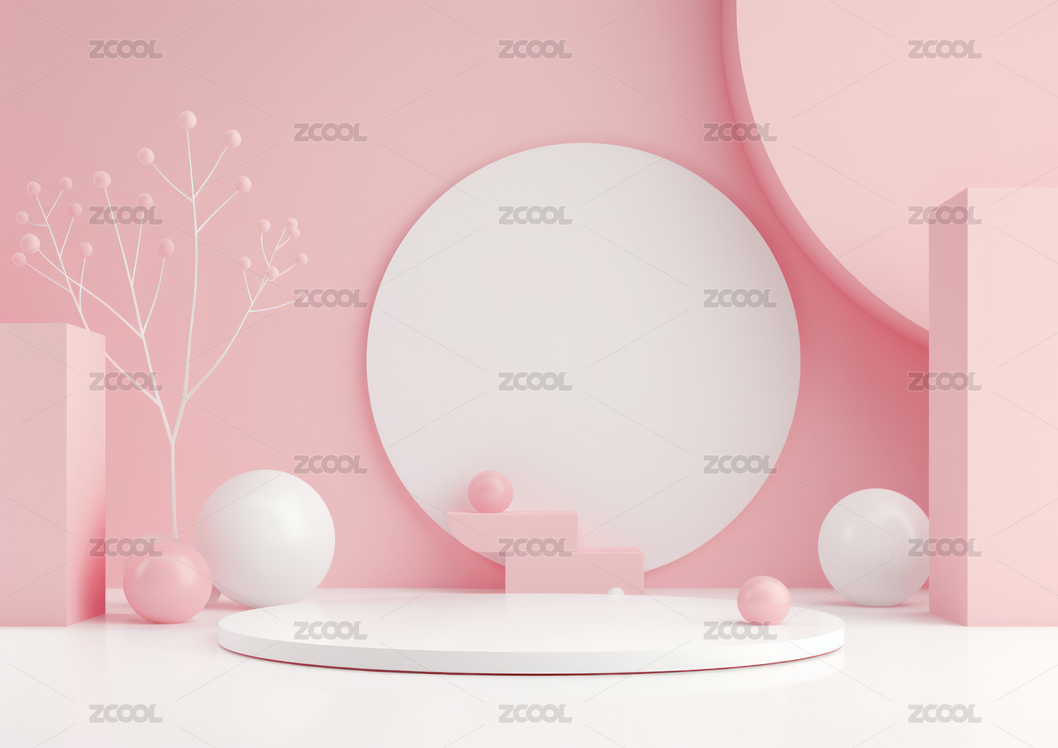 电商,展台,展览,舞台,背景,场景,创造力,粉色,清爽,绿植