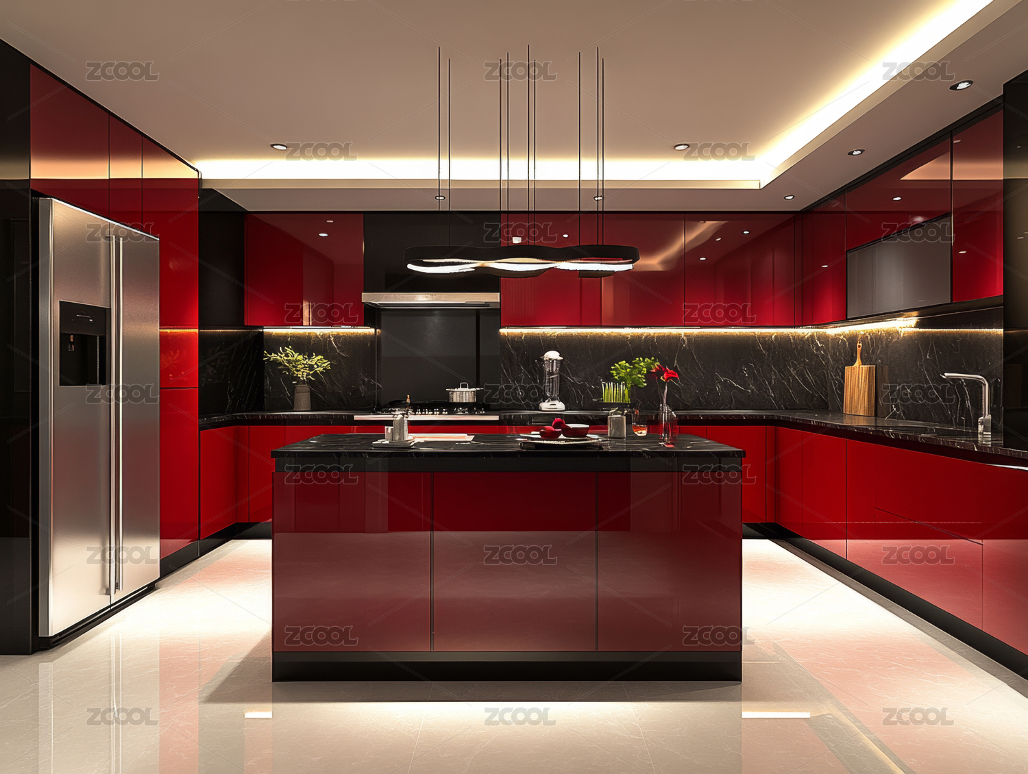 厨房,现代,橱柜,烤箱,水槽,咖啡机,抽油,烟机,绿色,棕色