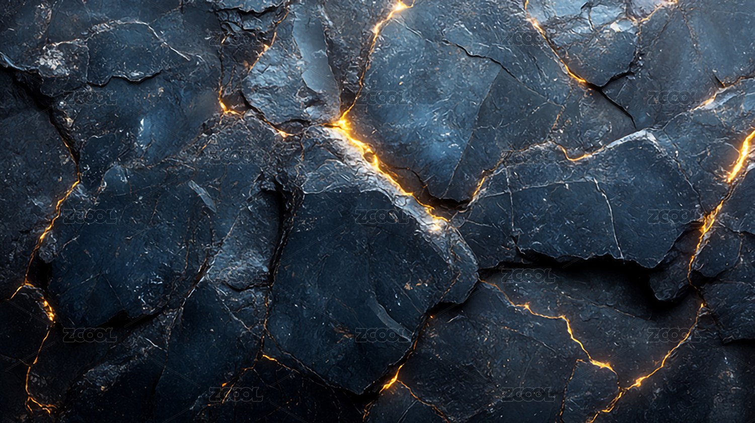 金色裂纹的黑色石质背景