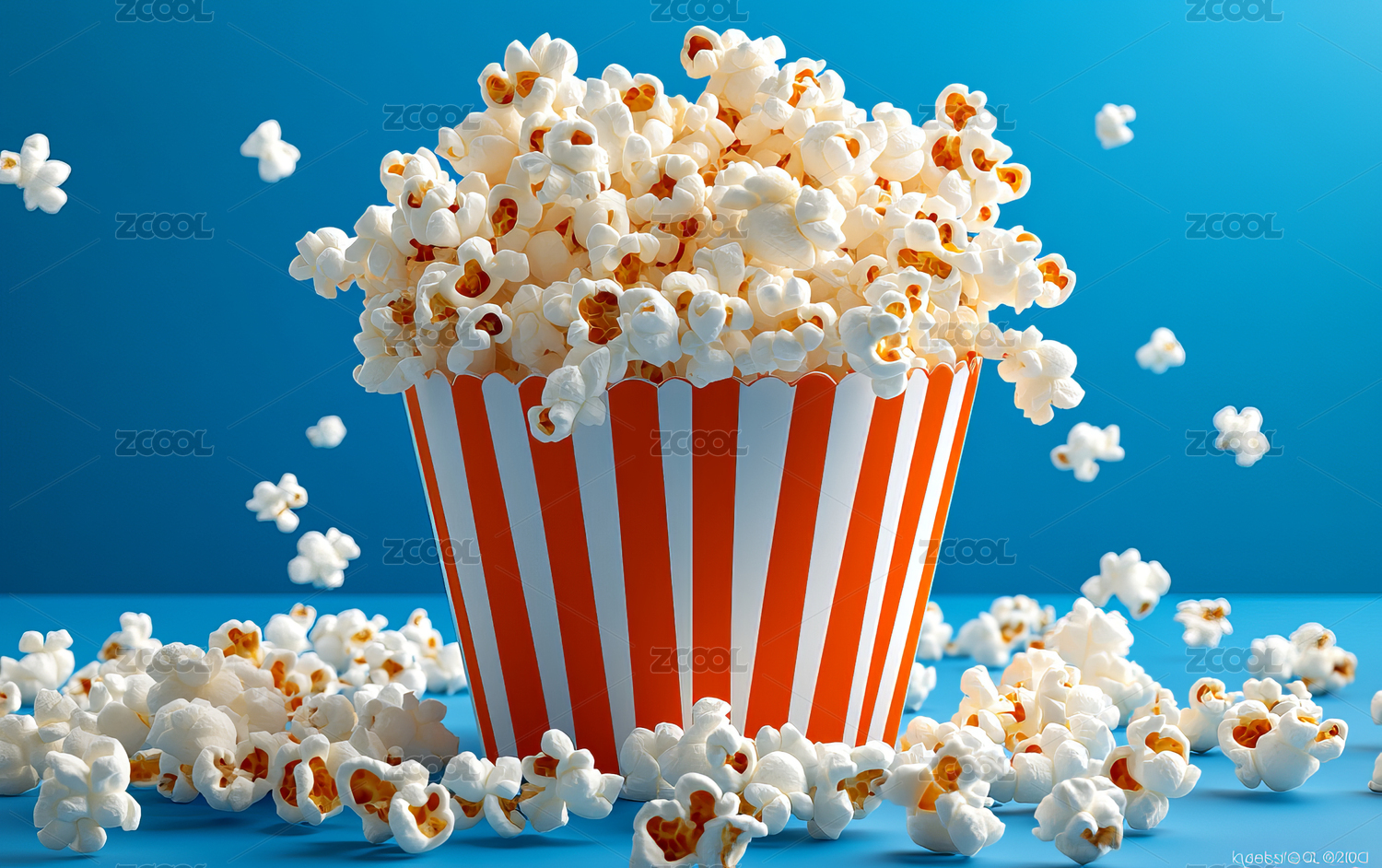 爆米花,散落,零食,观影,休闲,食品,口感,香甜,酥脆,视觉