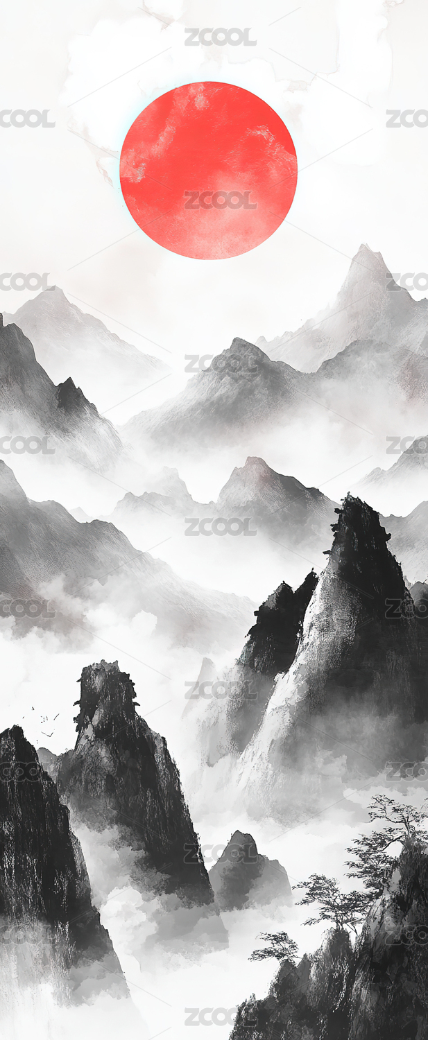 水墨山水日出意境图