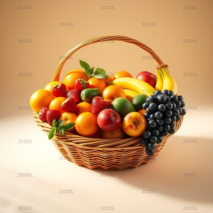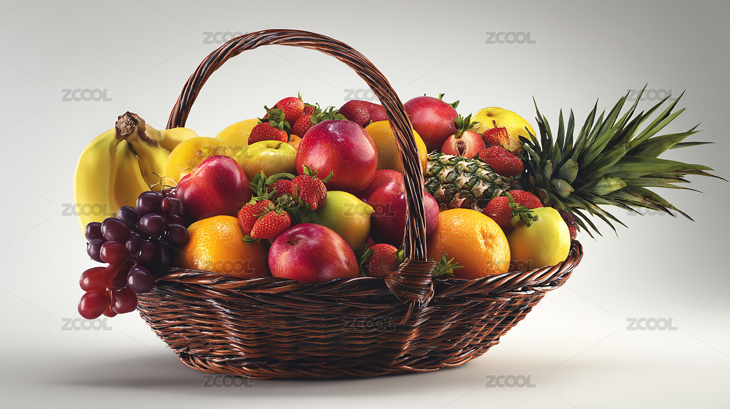 篮子, 水果, 草莓, 香蕉, 葡萄。