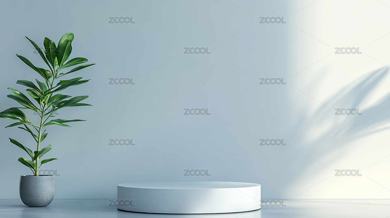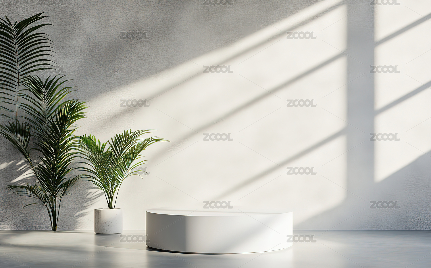 极简白色背景植物装饰圆形展台