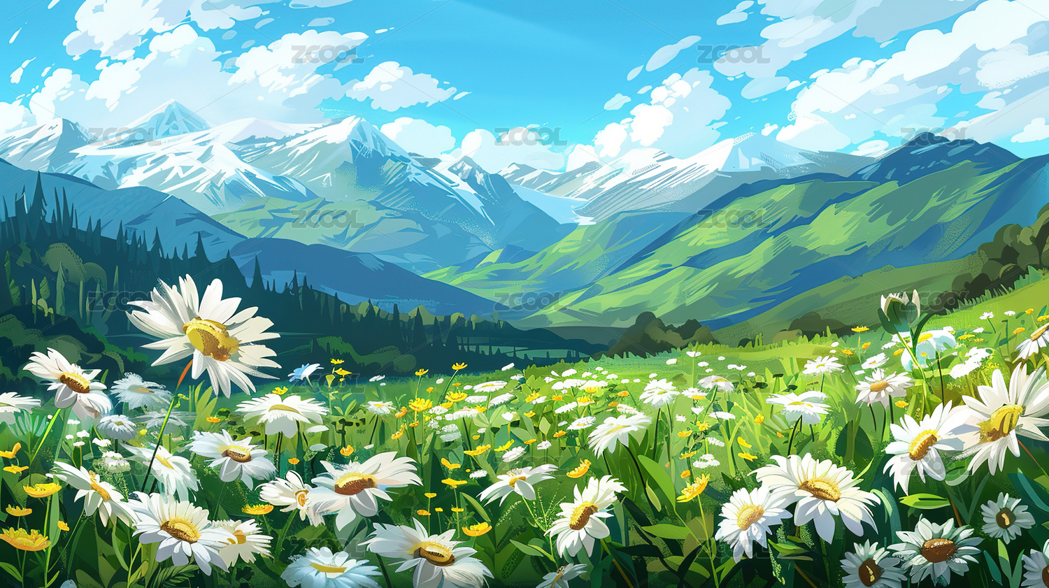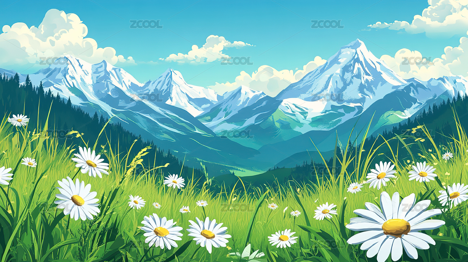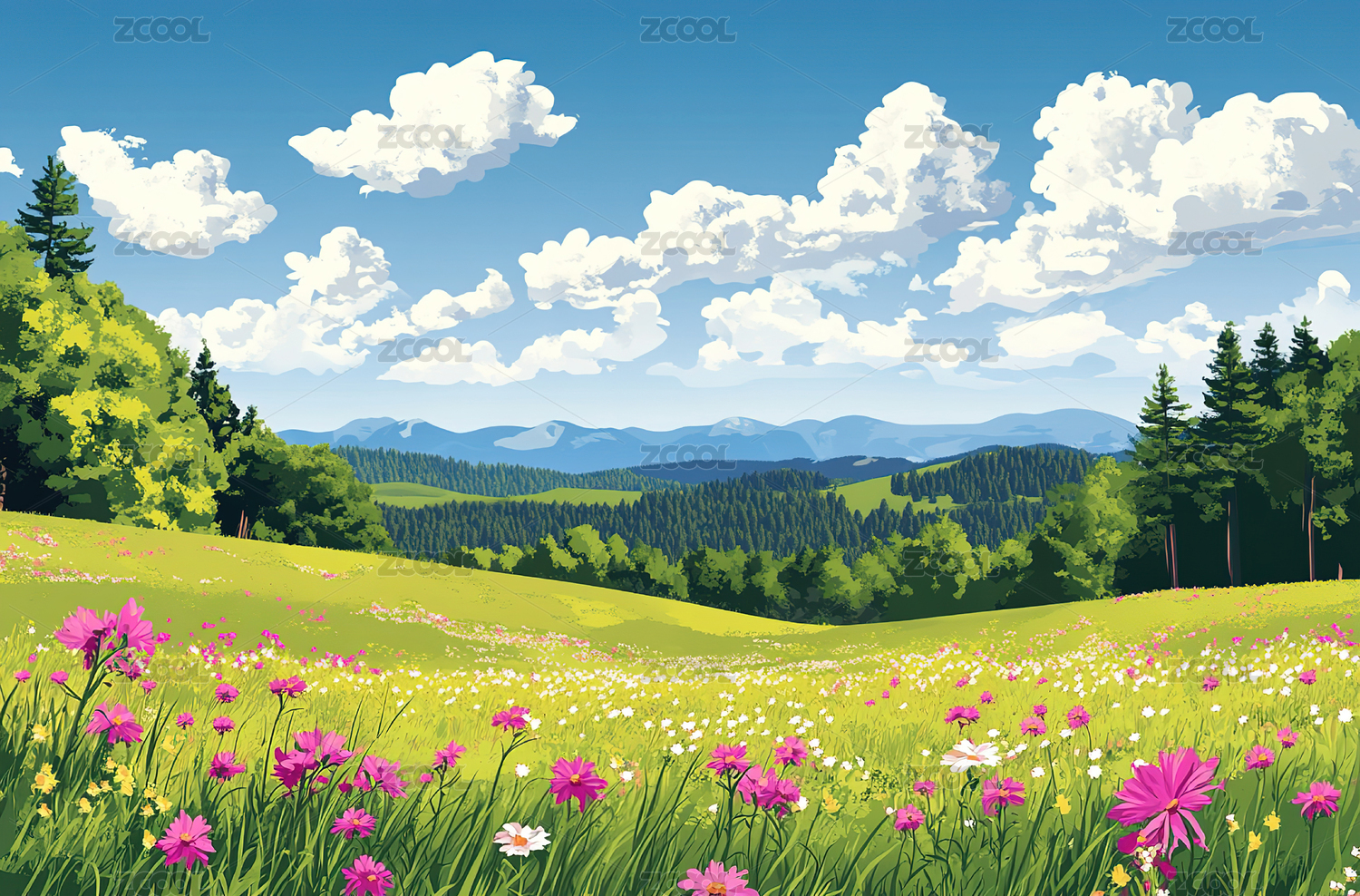 草地,插画,自然,风光,风景,户外,清新,森林,蓝天,树林