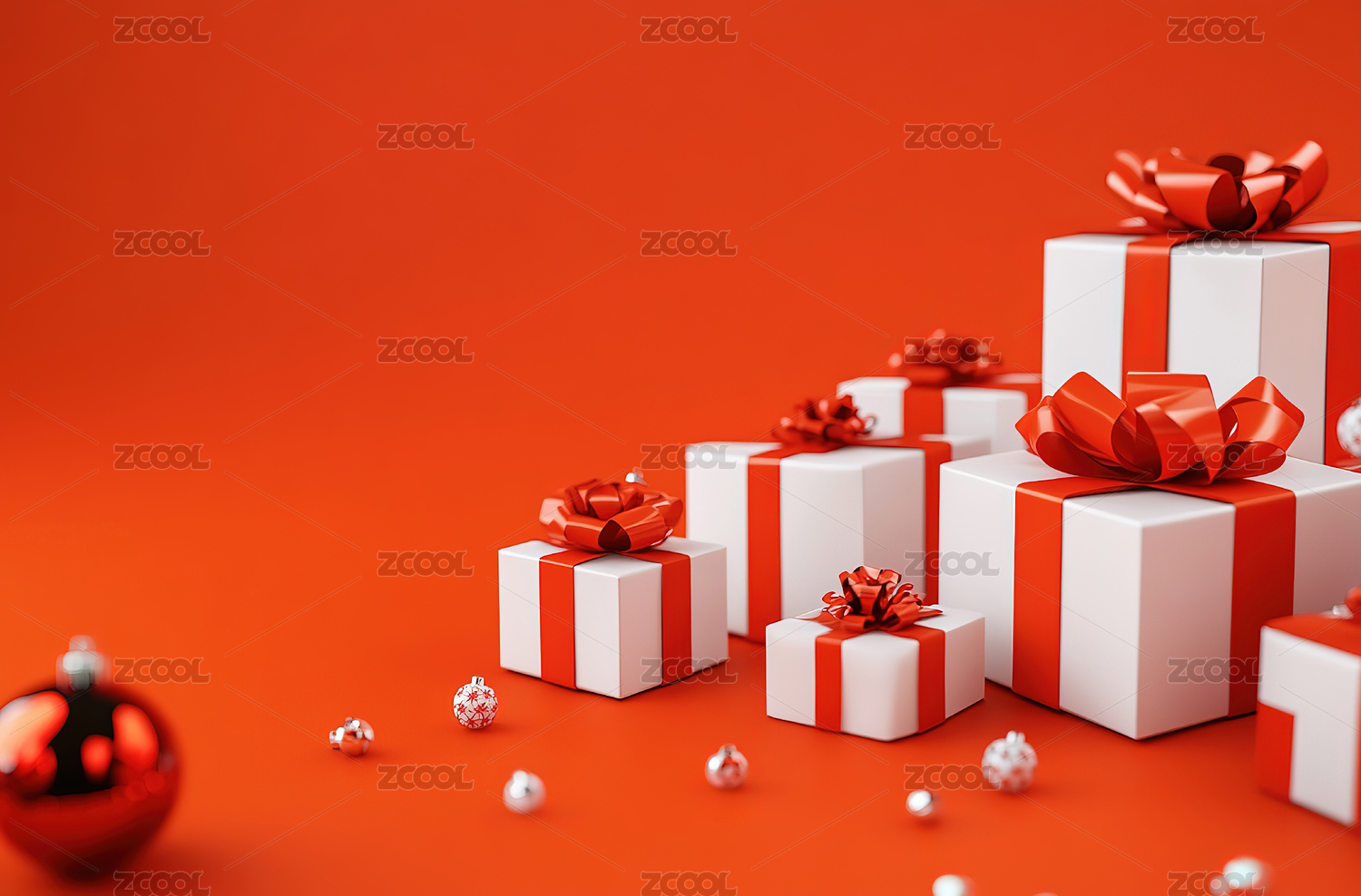 喜庆的红色礼盒装饰