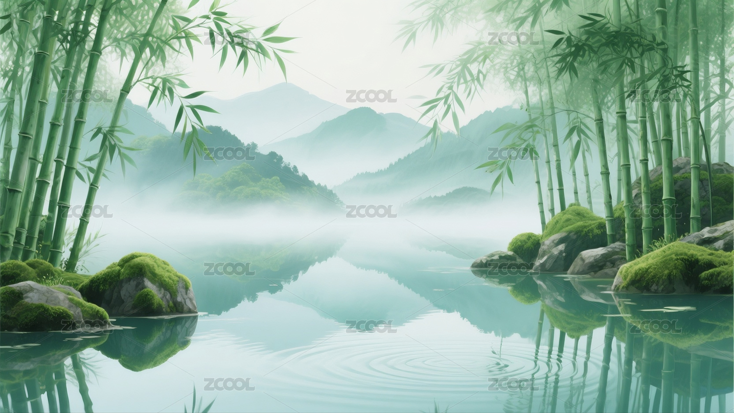 竹子水面中国风背景