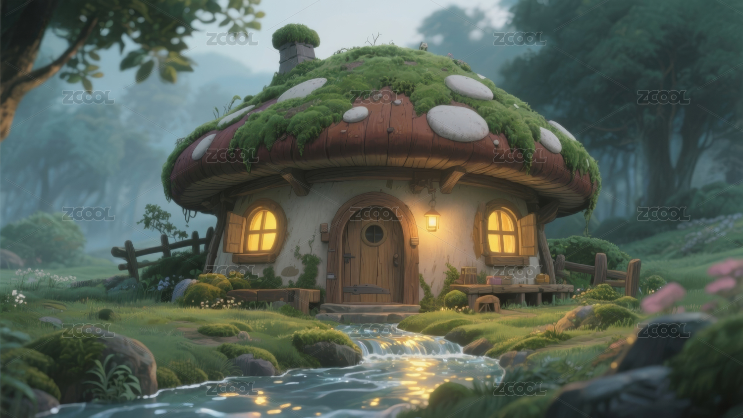 田园,绿地,景色,阳光,自然,宁静,树木,花朵,森林,小屋