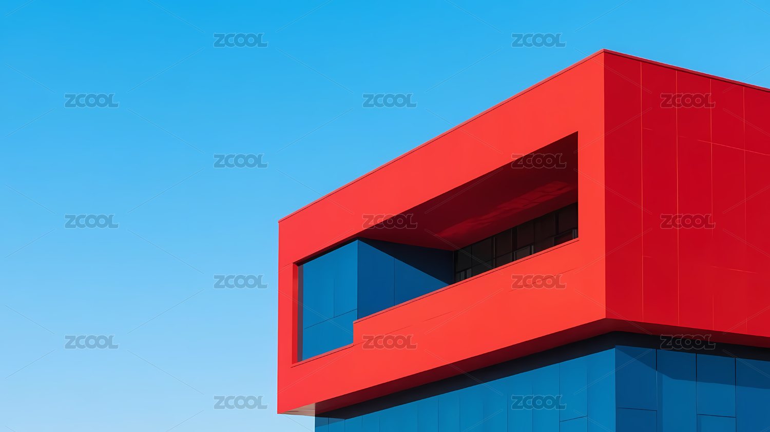 红色建筑与蓝天的现代艺术