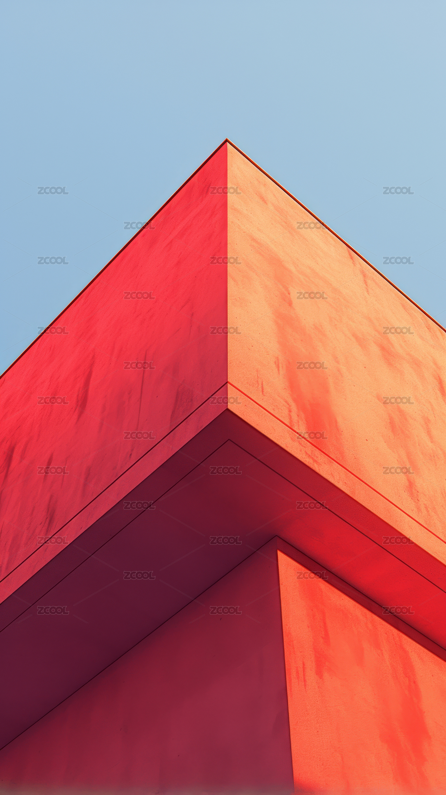 红色几何建筑与蓝天