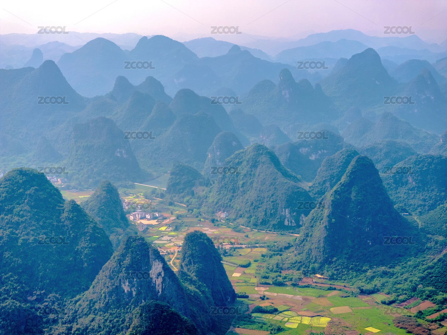 中国广西崇左市喀斯特地貌峰林自然风光航拍