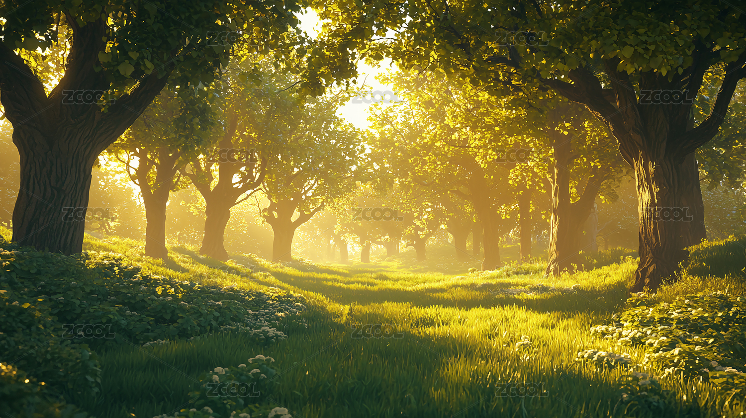 宁静,自然,山林,阳光,静谧,林间,光影,微风,生机,枝叶