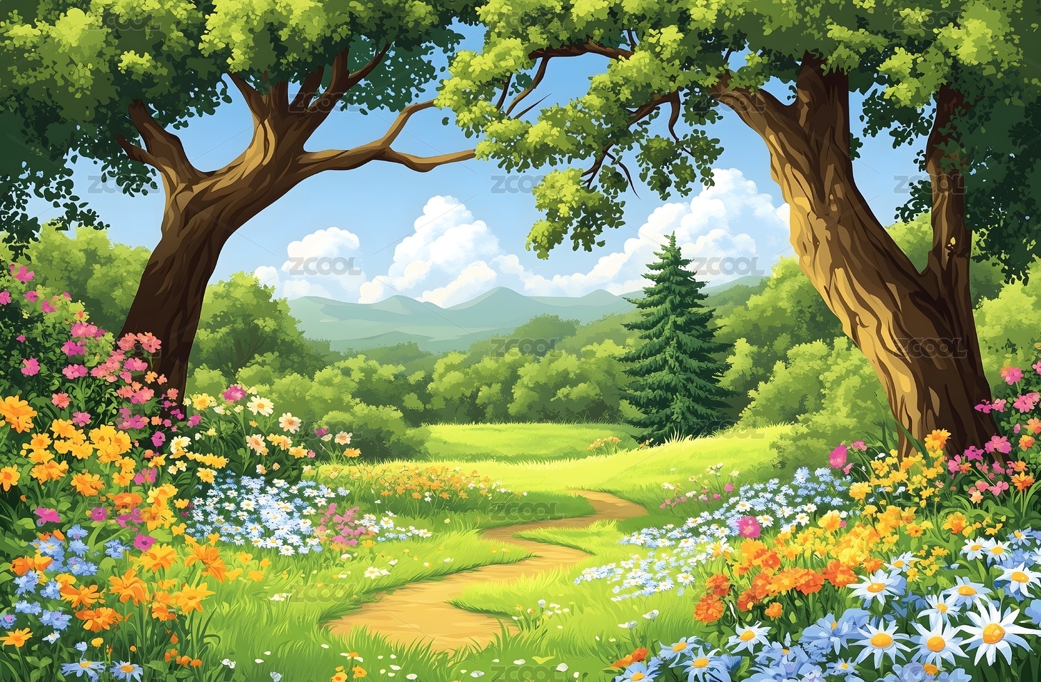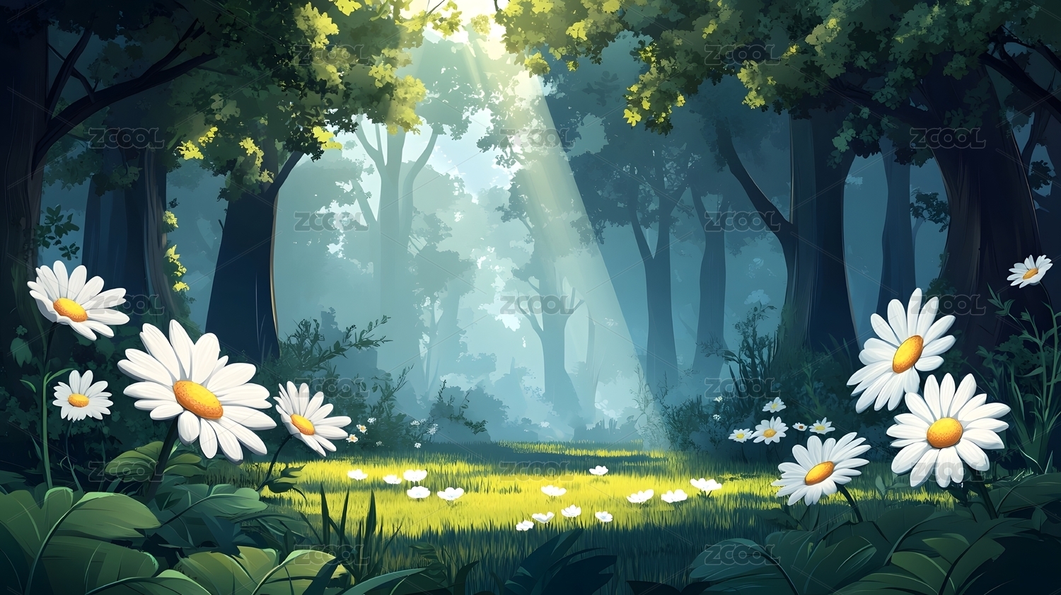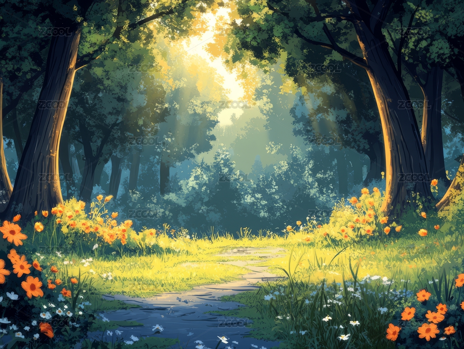 自然,野花,溪流,林间,竞相,光斑,花香,小溪,点点,树木