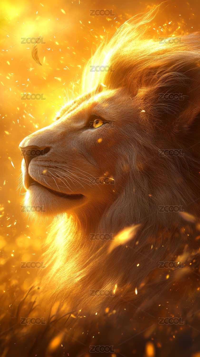 暗黑风格夜幕降临狮王在草原的头像风景插画