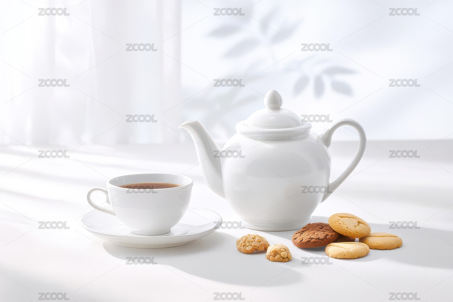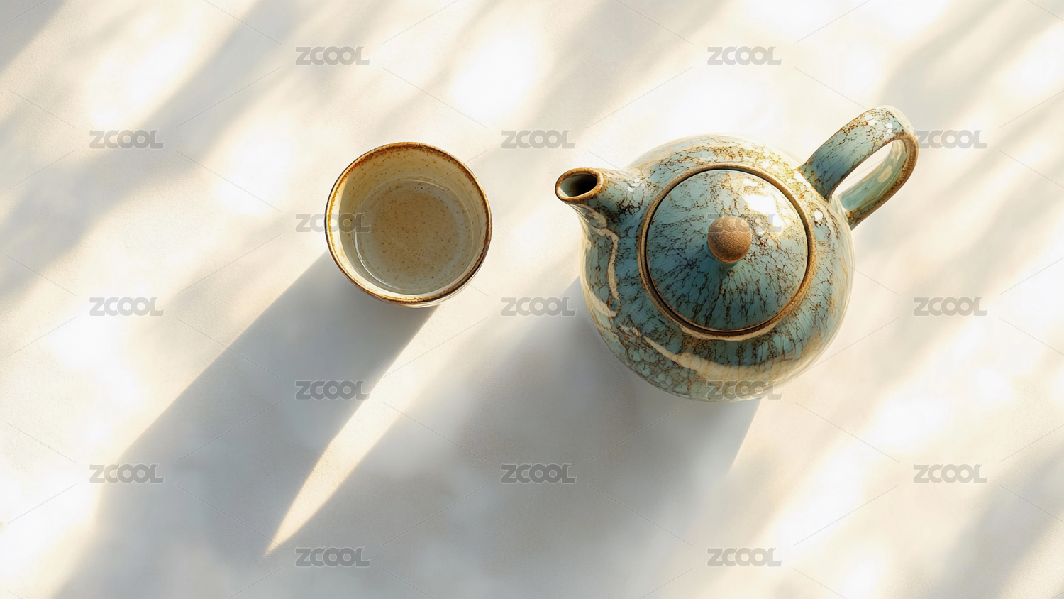陶瓷茶壶与茶杯温暖茶艺场景.