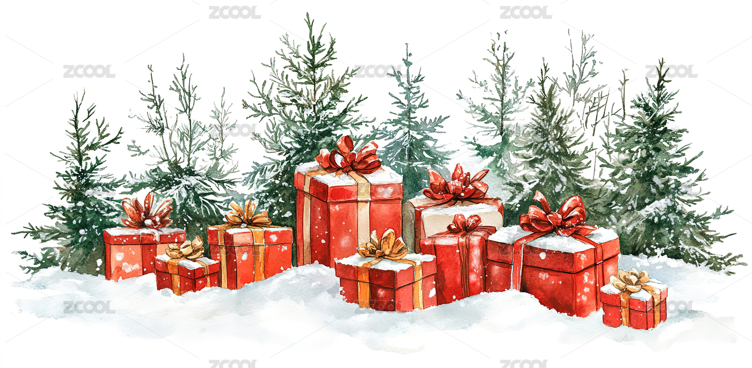 冬天雪地圣诞礼盒礼物海报壁纸插画