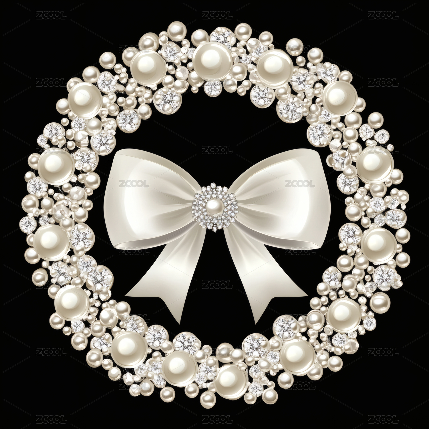 头像,边框,花环,珍珠,蝴蝶结,白色,丝带,光泽,圆润,排列