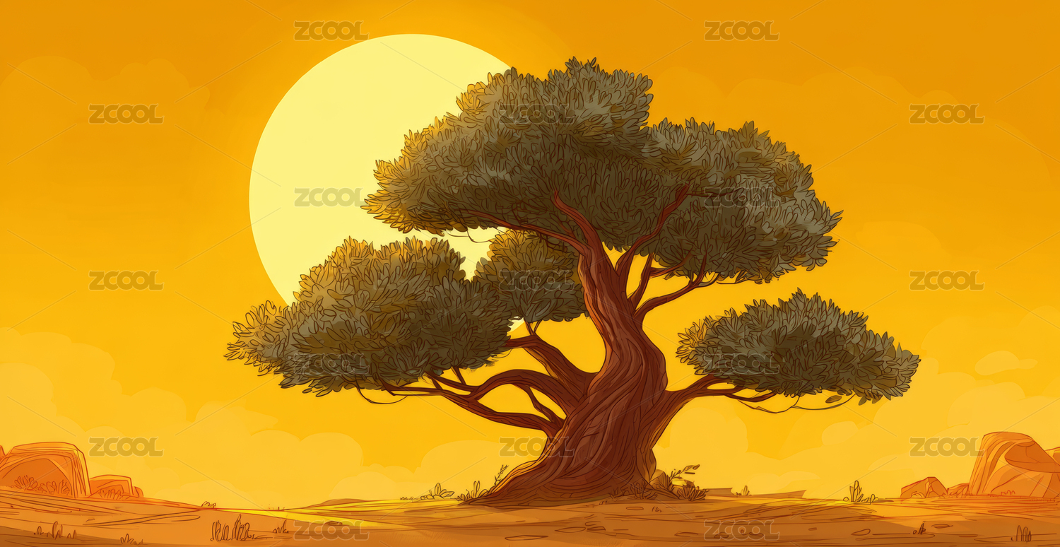 沙漠孤树风景插画