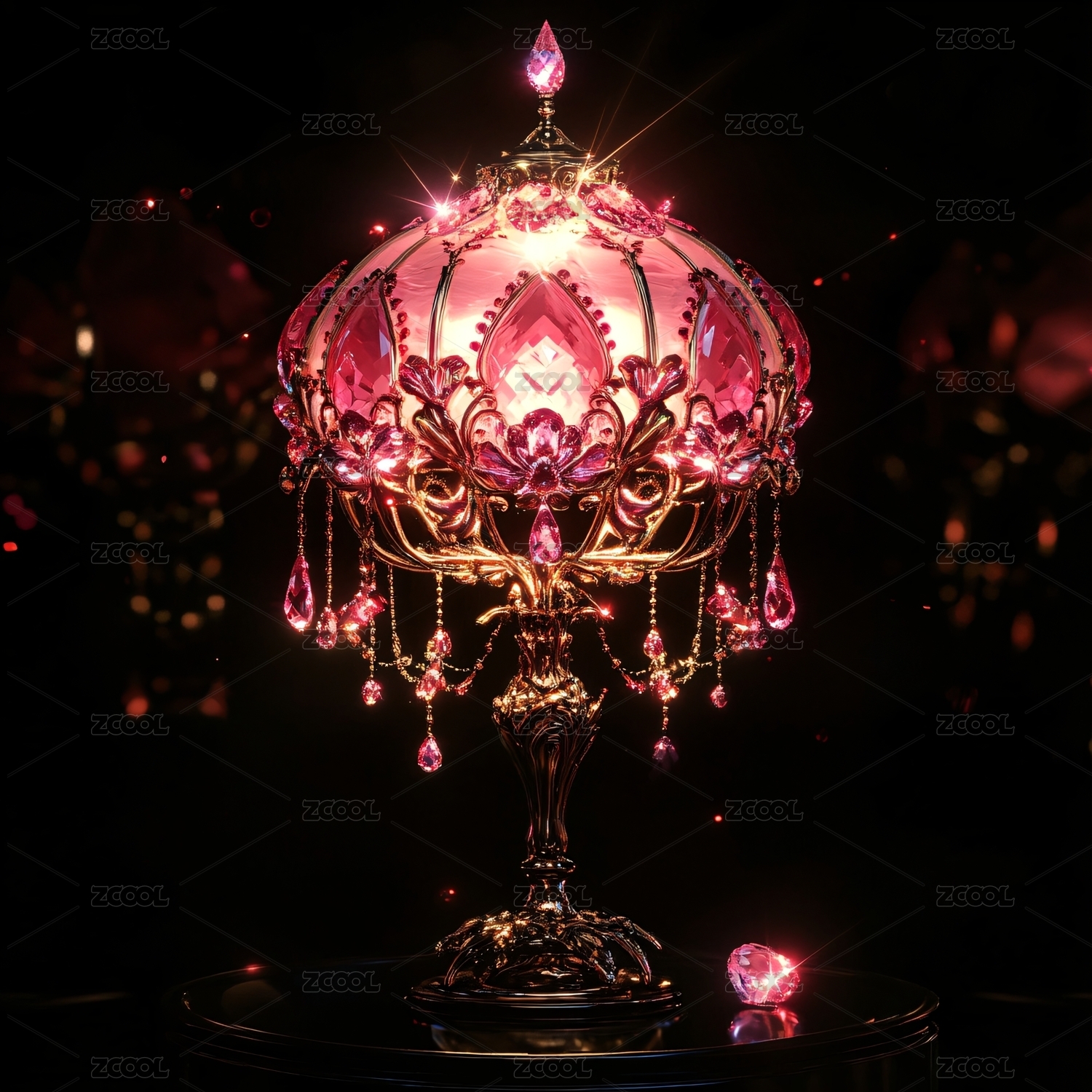 粉晶,宝石,金属,光影,闪烁,黑色,背景,梦幻,浪漫,华丽