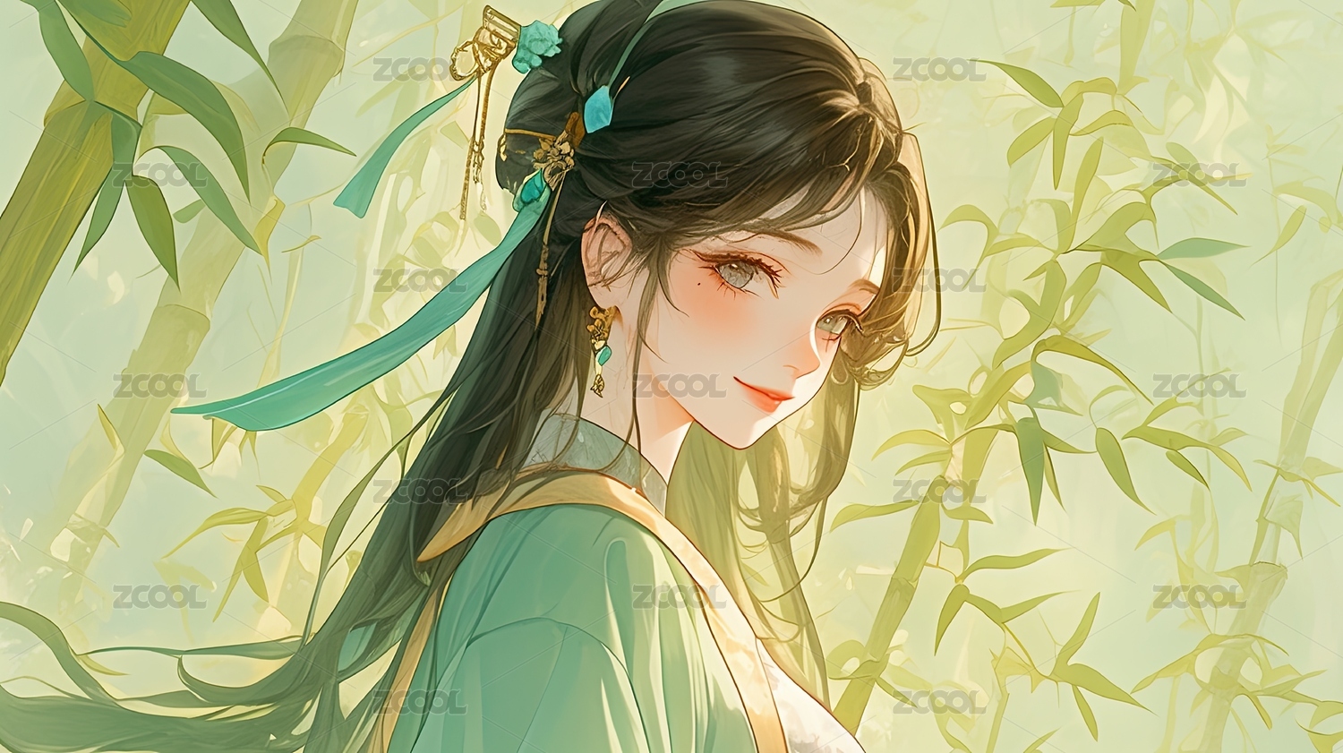 古风女子与竹林
