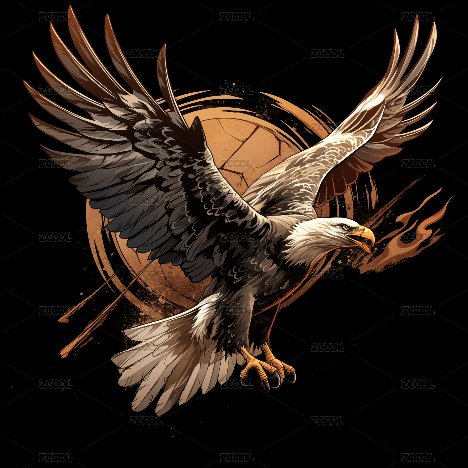 复古摇滚风格火焰与展翅翱翔的老鹰装饰画