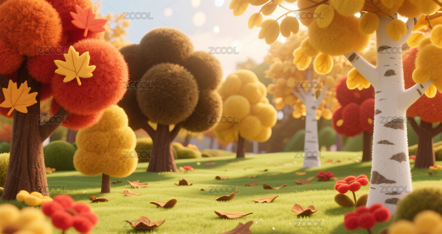 秋天, 树木, 小径, 红色, 黄色, 蓝天, 白云, 自然, 风景
