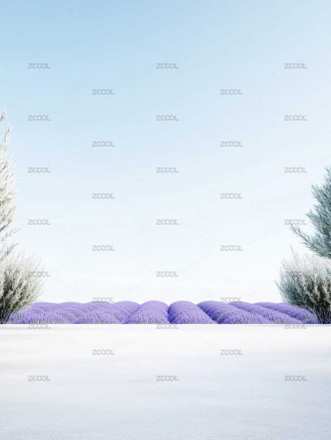 冬日, 雪地, 薰衣草田, 树木, 白雪, 蓝天, 自然, 冬季