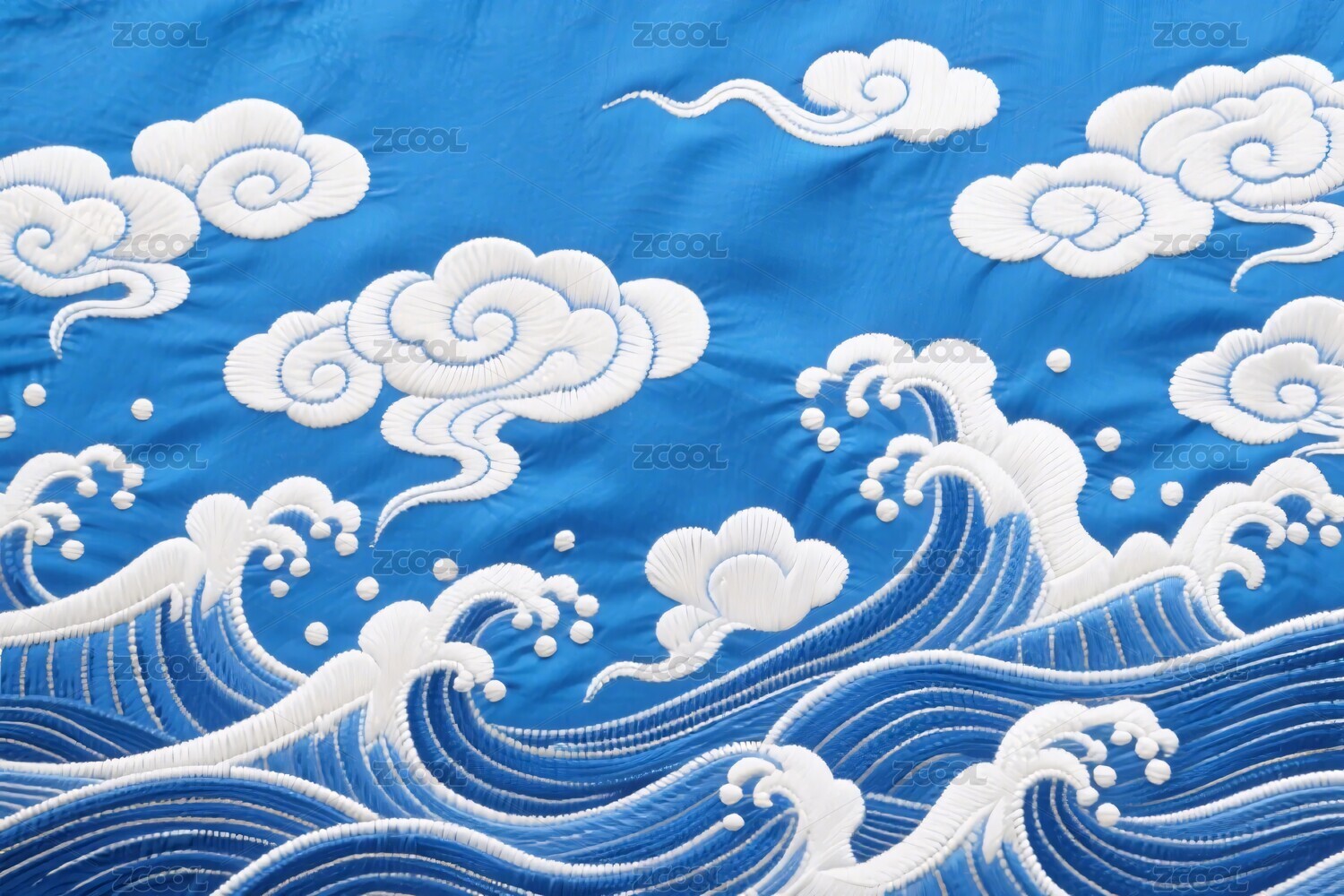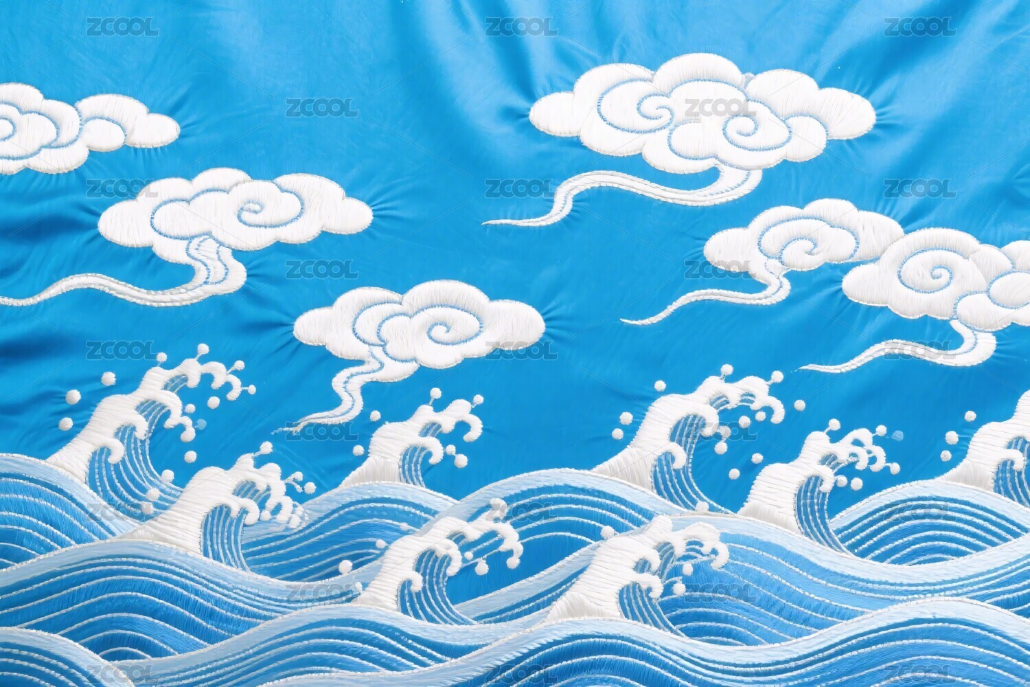 海浪,波涛,金色,白色,绿色,图案,装饰,面料,布料,丝绸