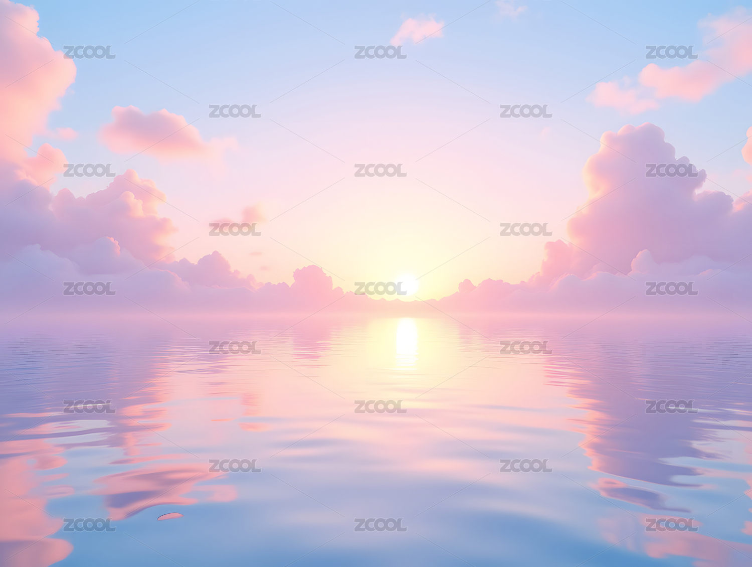 平静,唯美,粉色,云彩,倒影,梦幻,湖面,日落,天空,宁静