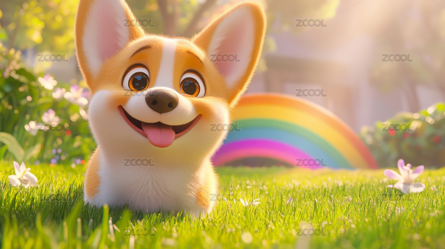 小狗,柯基,宠物,奔跑,草地,阳光,可爱,嬉戏,户外,快乐