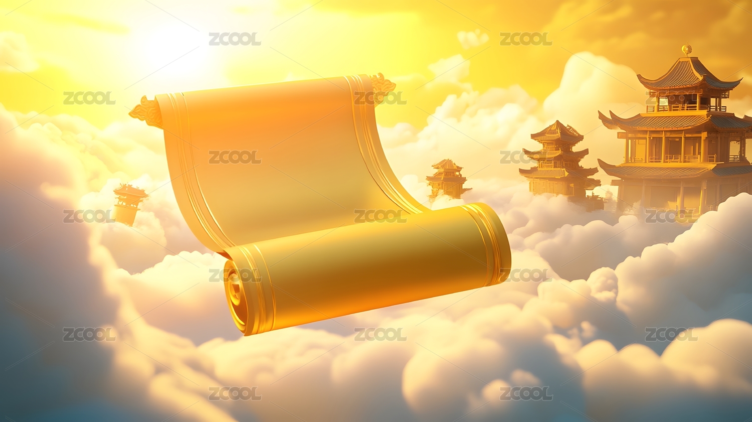 新中式,中式,中国风,国风,山水,意境,金色,梦幻,艺术,山峰