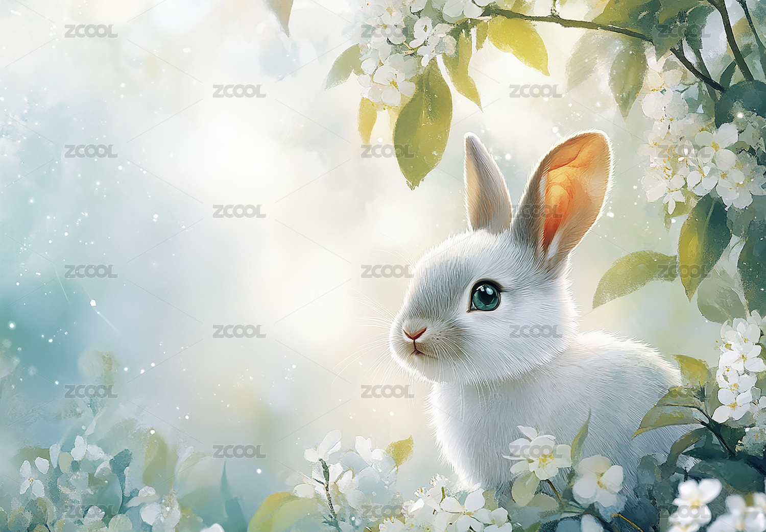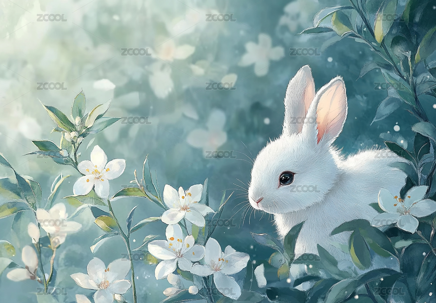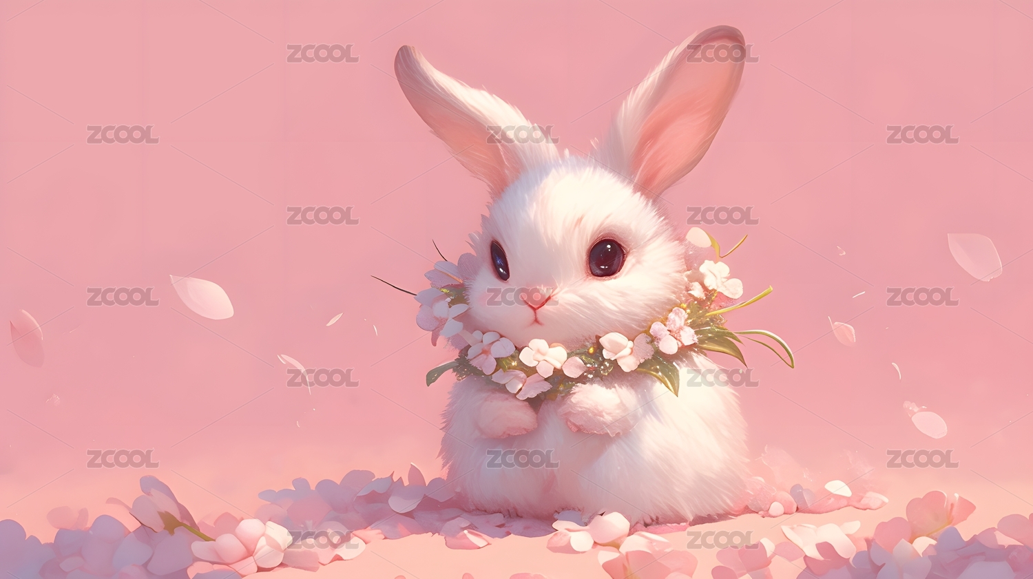 两只可爱的卡通兔子在草地上动物插画壁纸