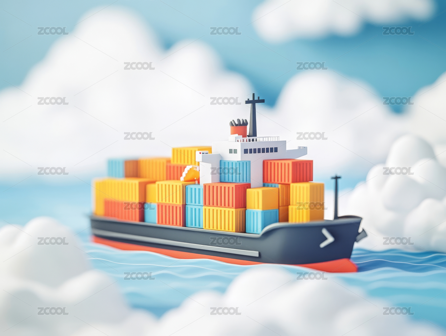 卡通货船海上航行图