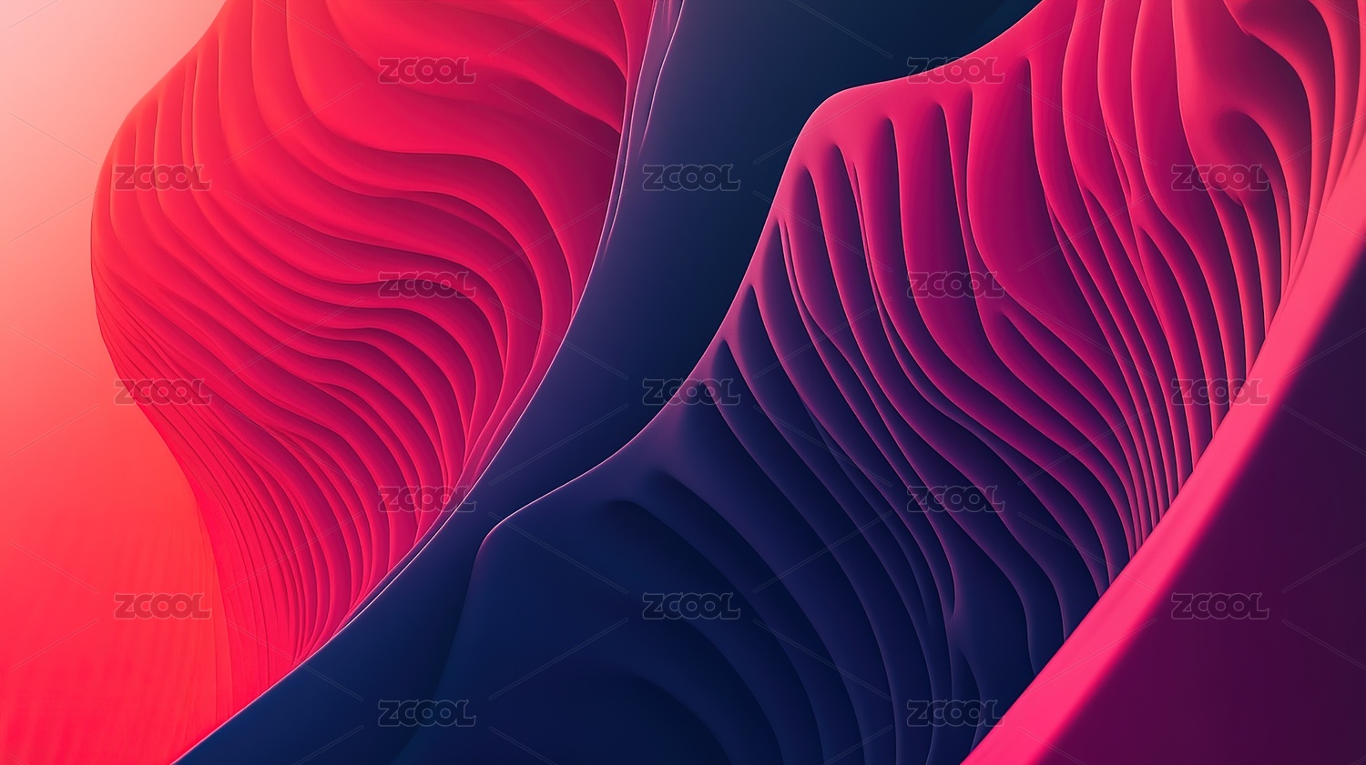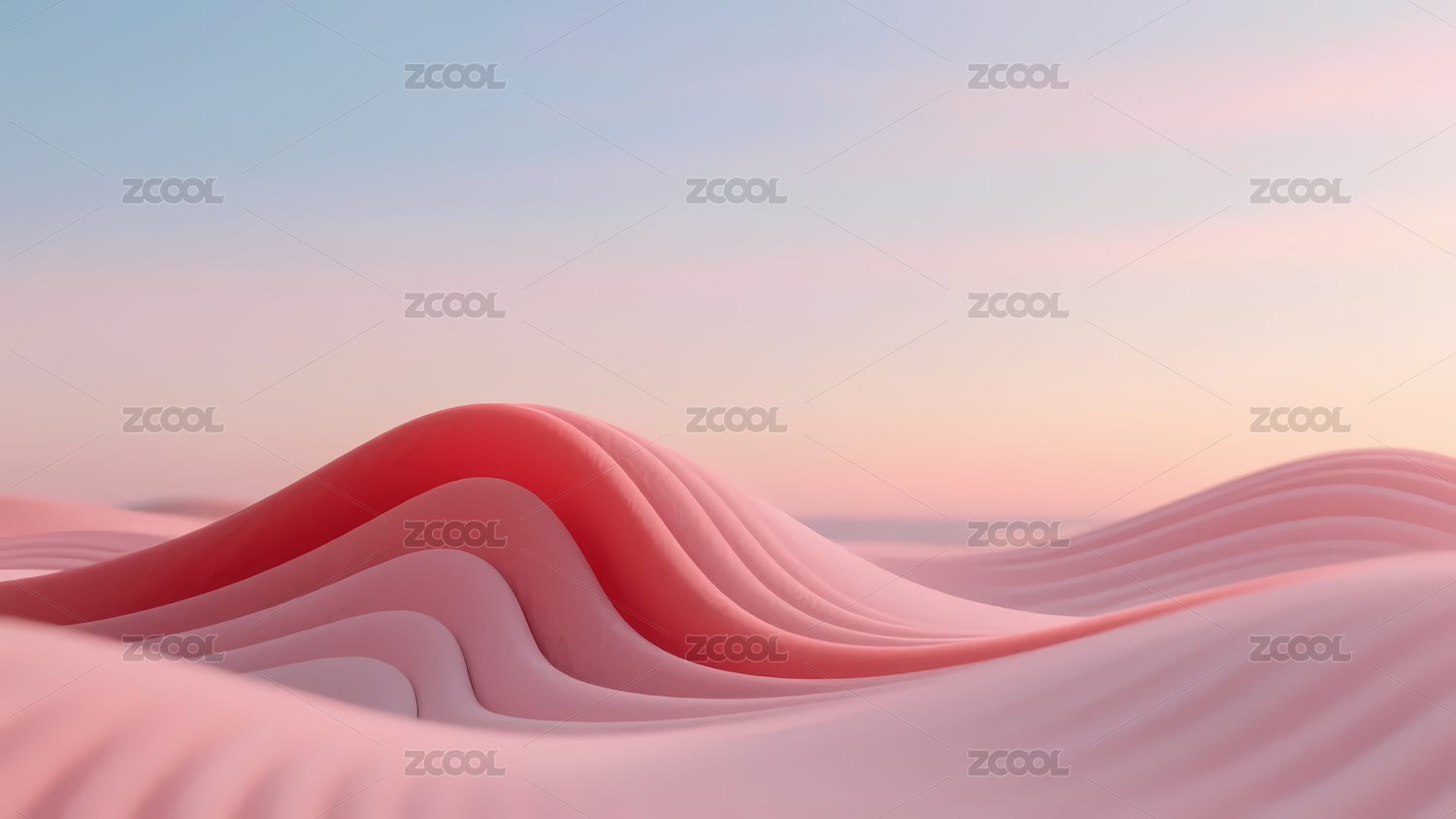 抽象红色波浪起伏的山丘在粉色背景下