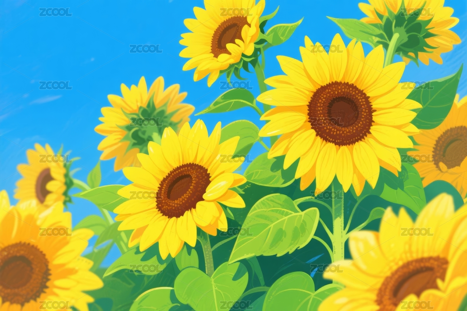 向日葵,葵花,插画,壁纸,夏天,唯美,花朵,自然