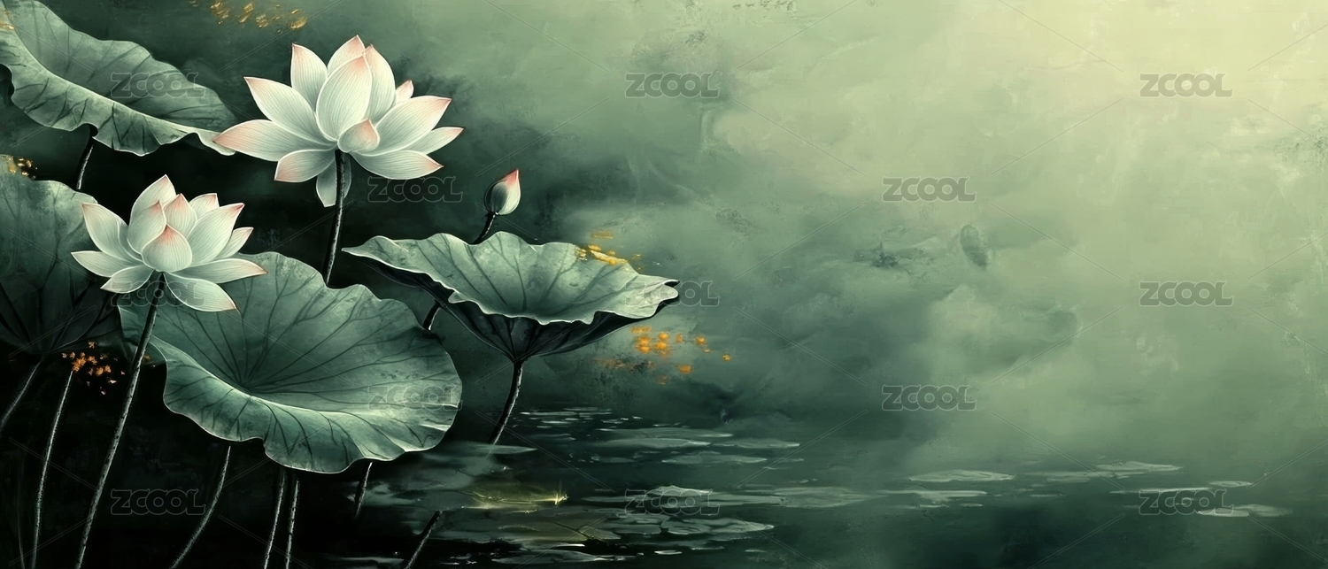 唯美,荷花,花朵,水墨画,水墨风格,中式,国潮,风景,插画,壁纸