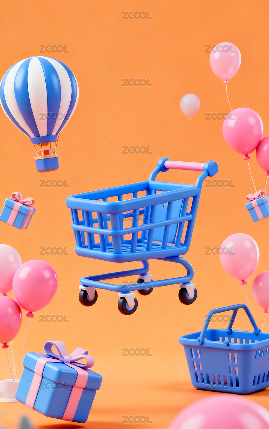 电商3D购物车礼盒背景